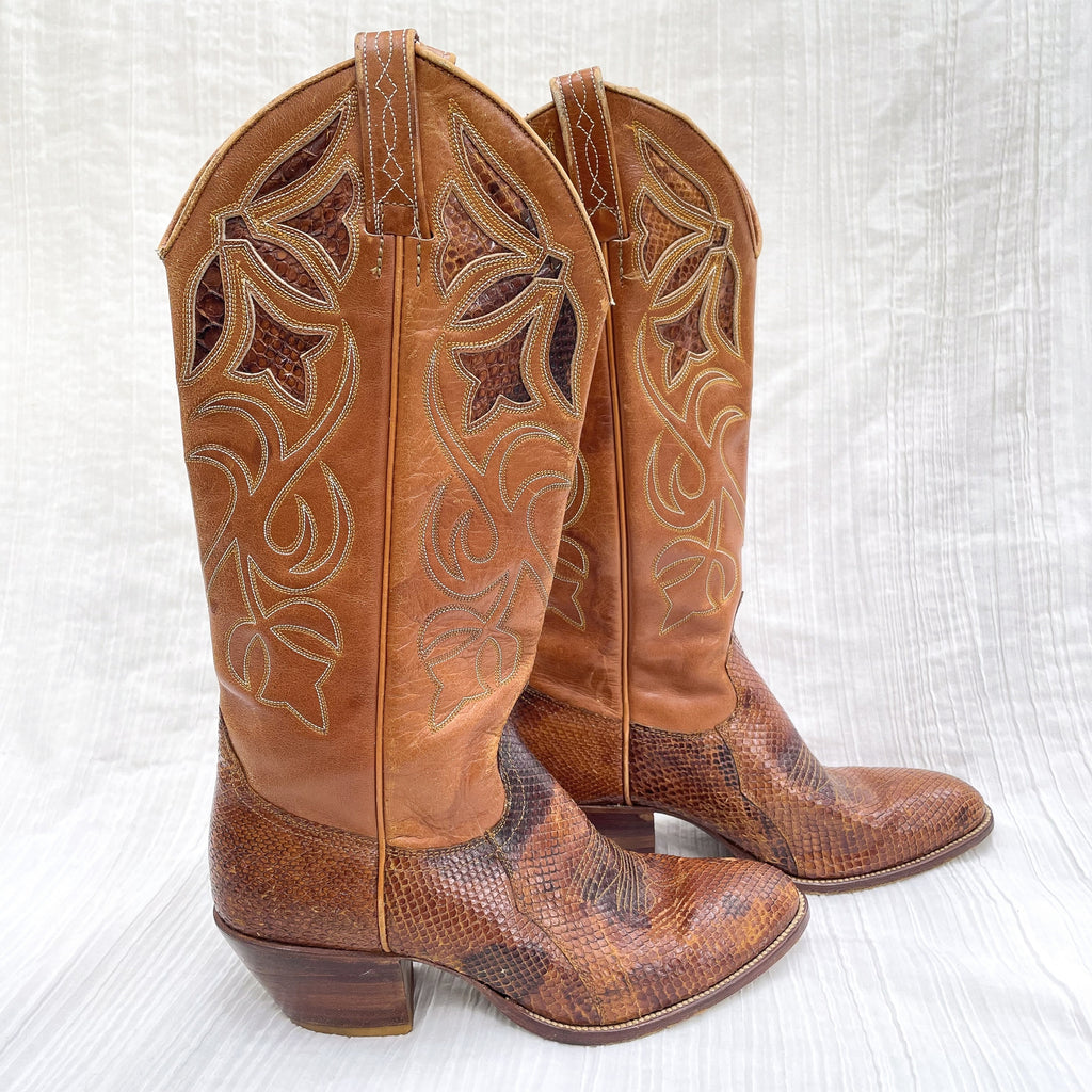 Vintage Dan Post leather/snakeskin boots. Women's boots.