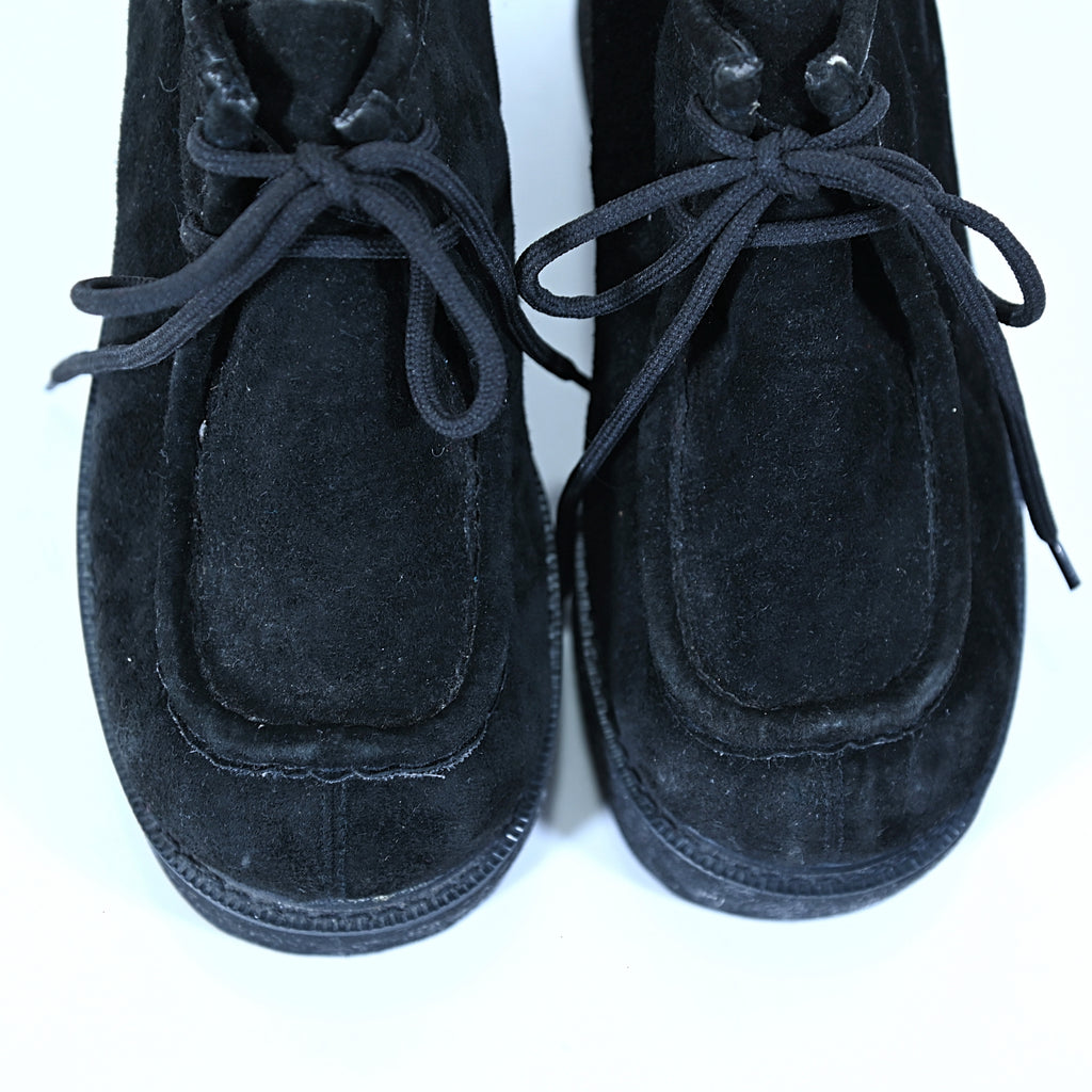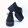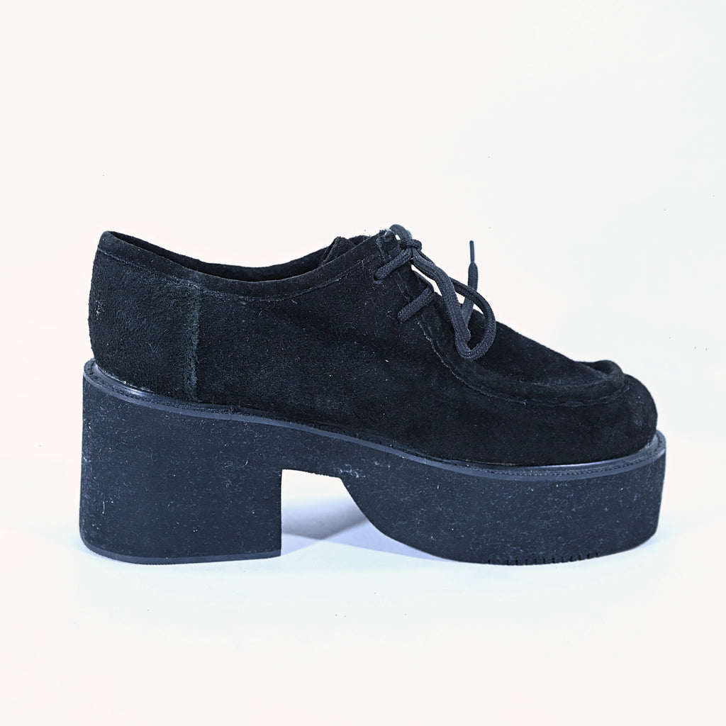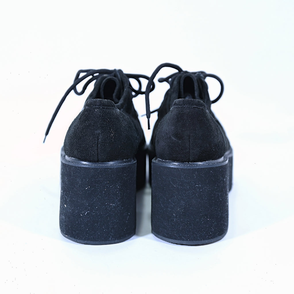 Black suede lace up oxford creepers in the style of Wallabees.