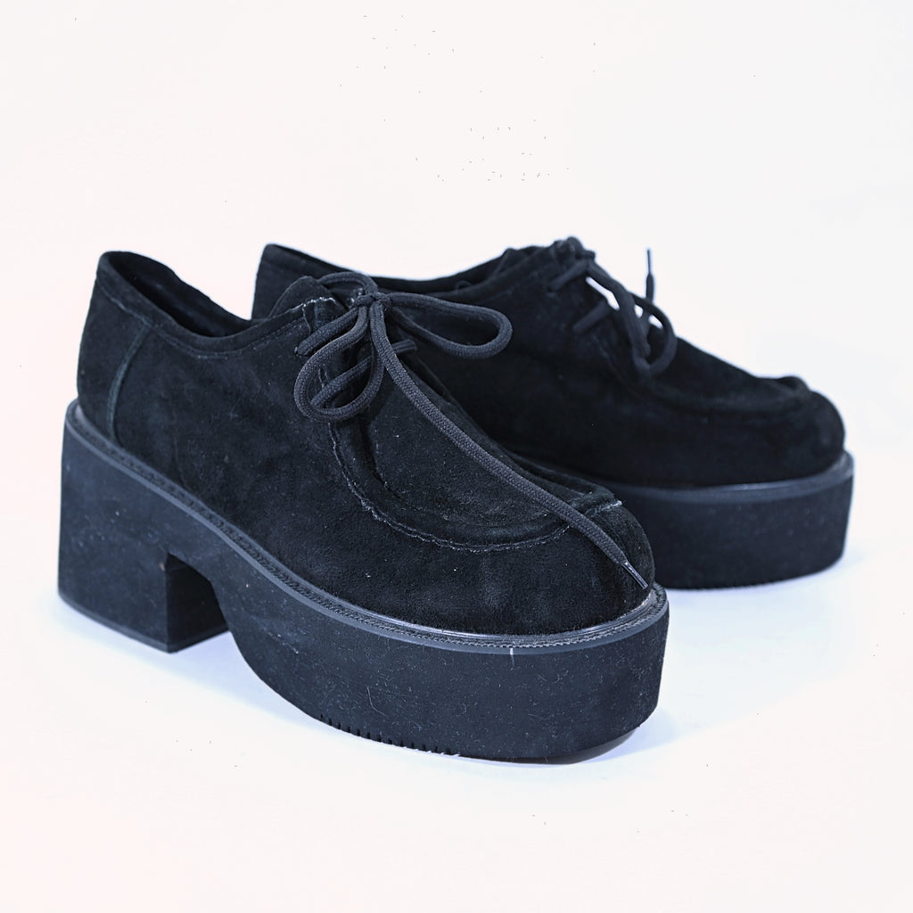 Crepe thick platform soles & chunky heels.