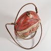 Dimensional face with amazing detailing. Hinged on the bottom, long leather strap.