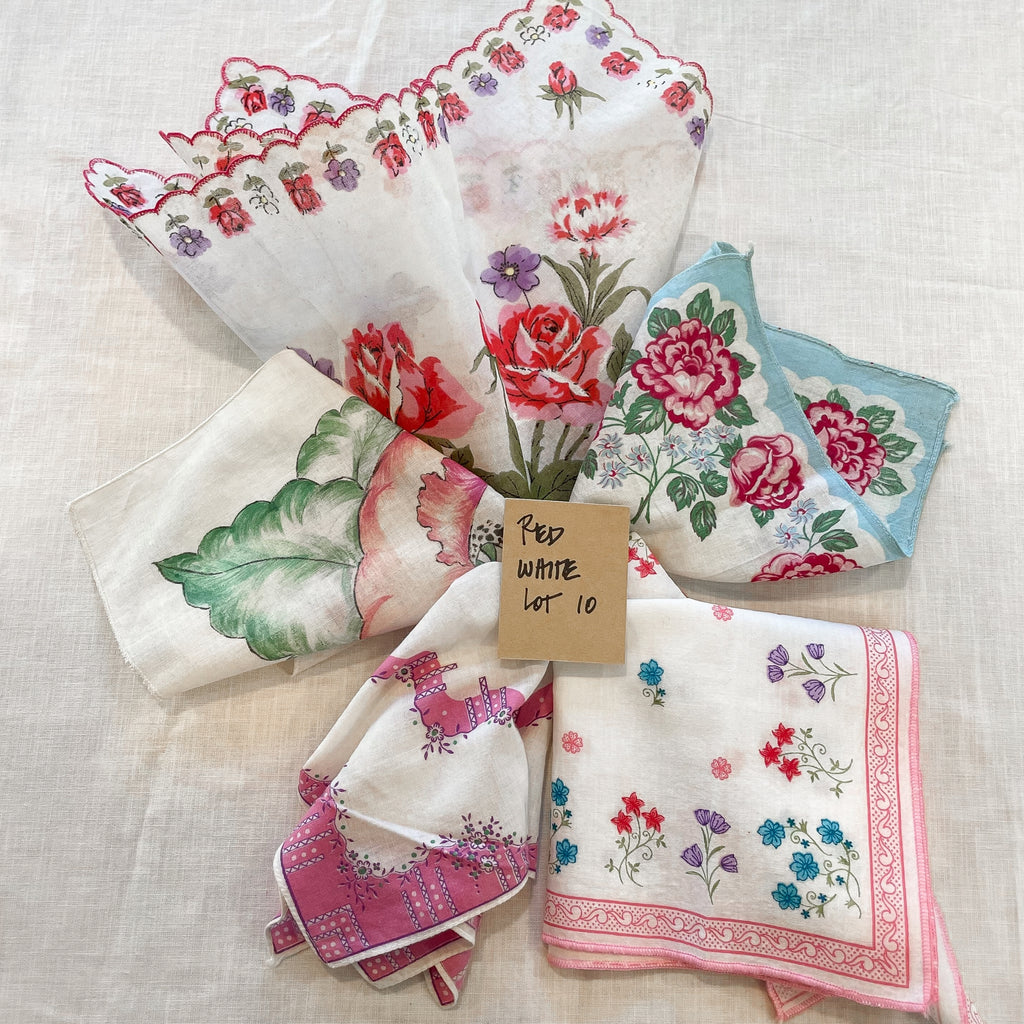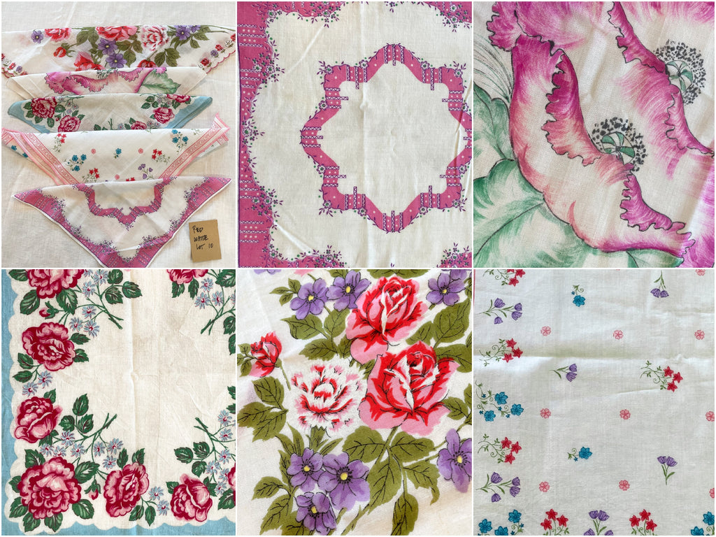 Vintage 40s/50s cotton print handkerchiefs. 5 pieces in this lot.