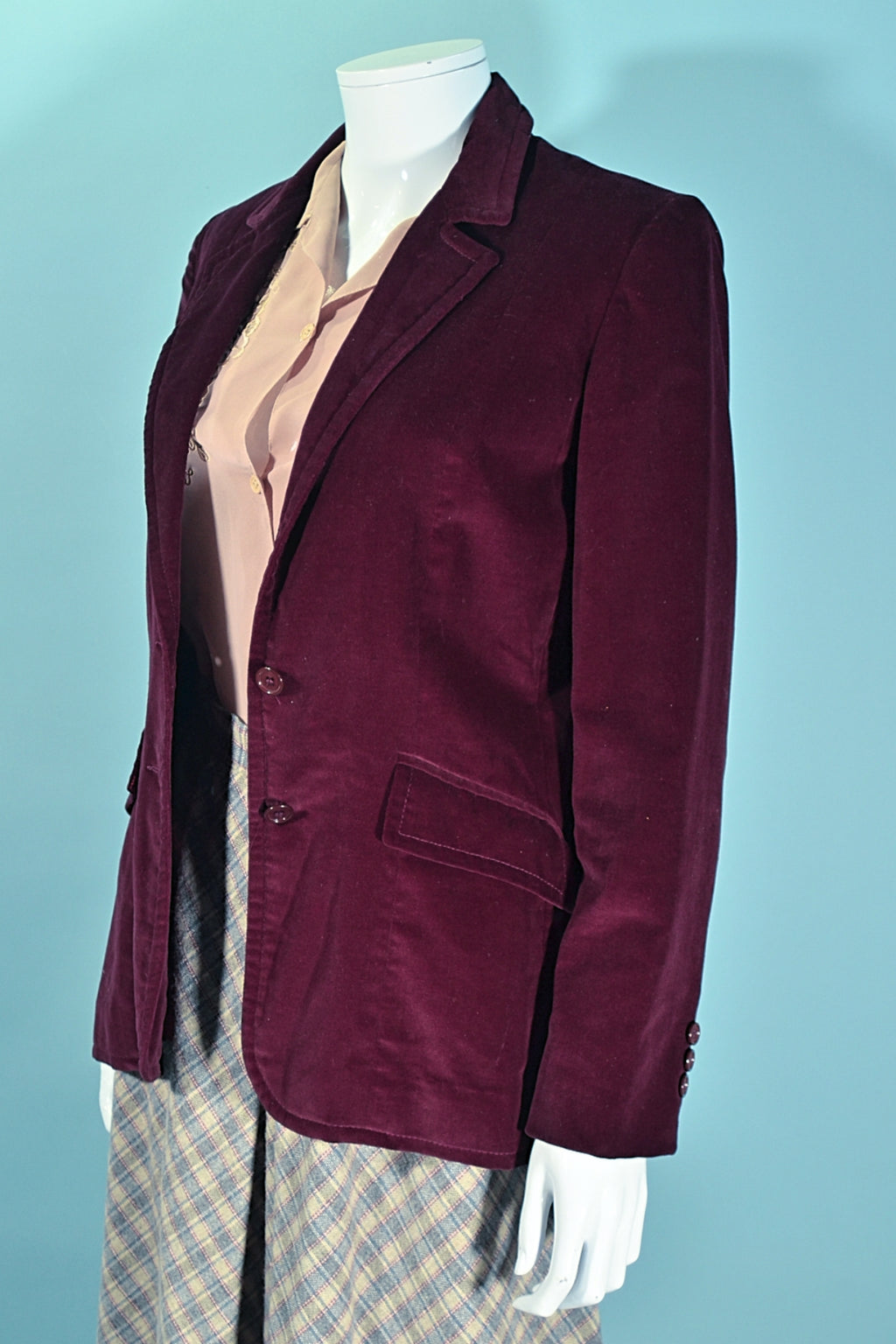 Vintage 70s Burgundy Velvet Blazer Jacket S
