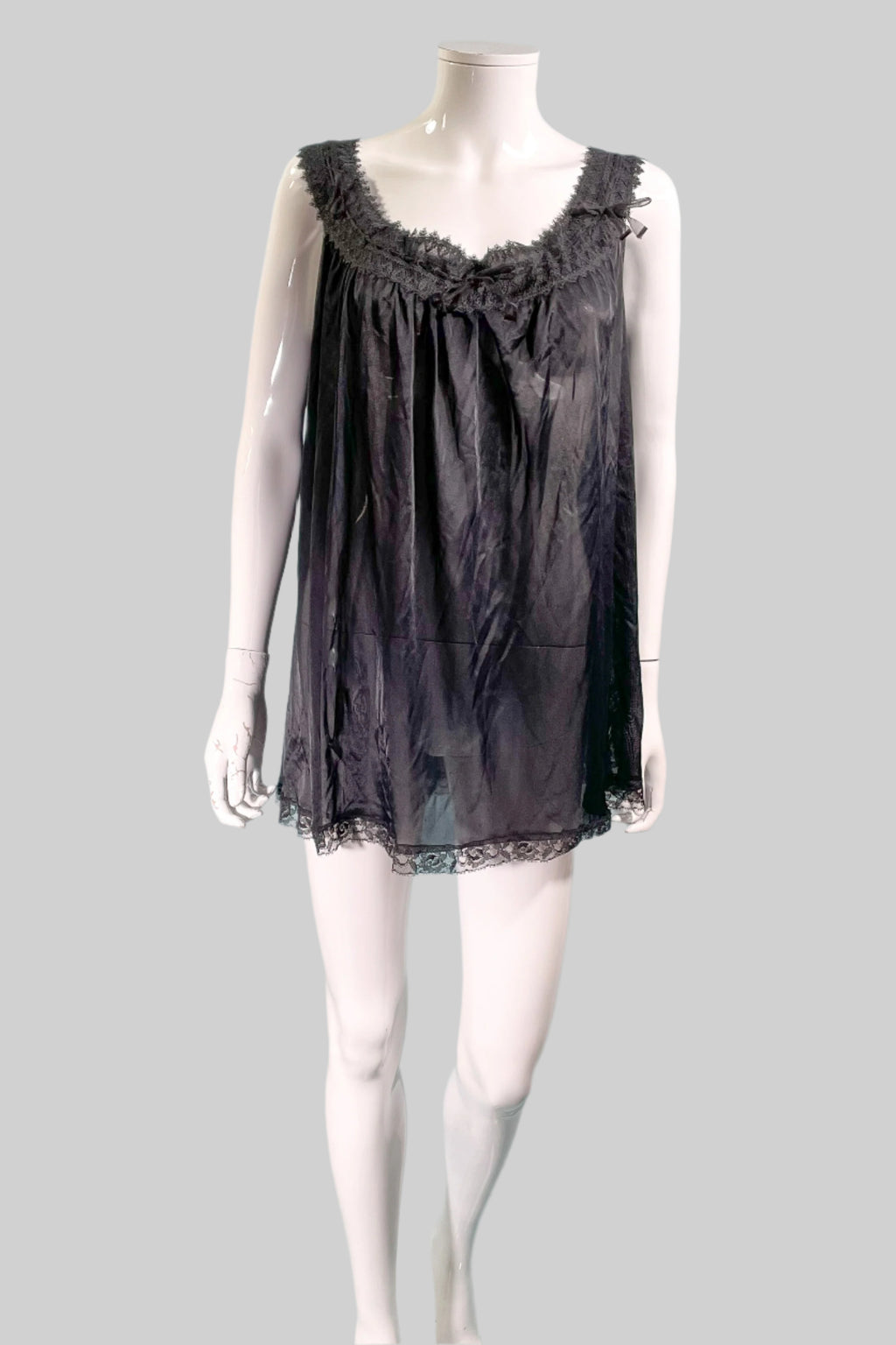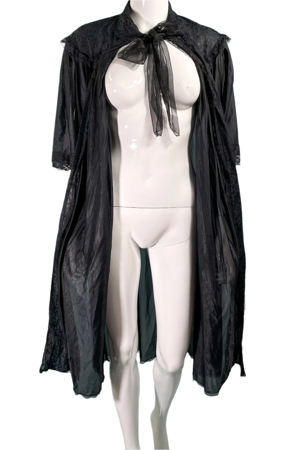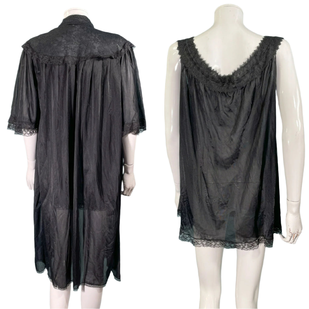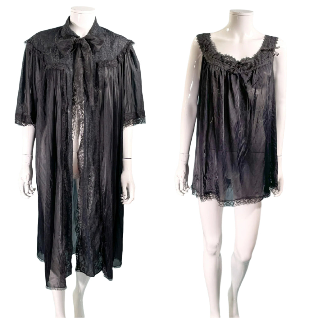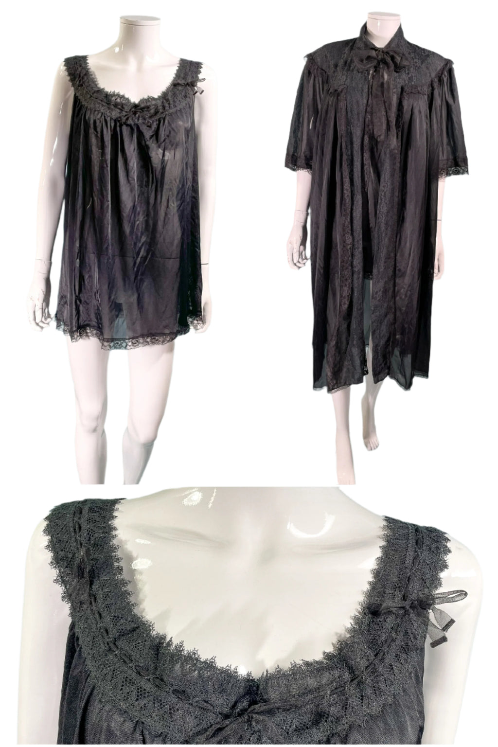 Vintage Black Baby Doll Nightie/Peignoir/Negligee Set Juveta France M/L