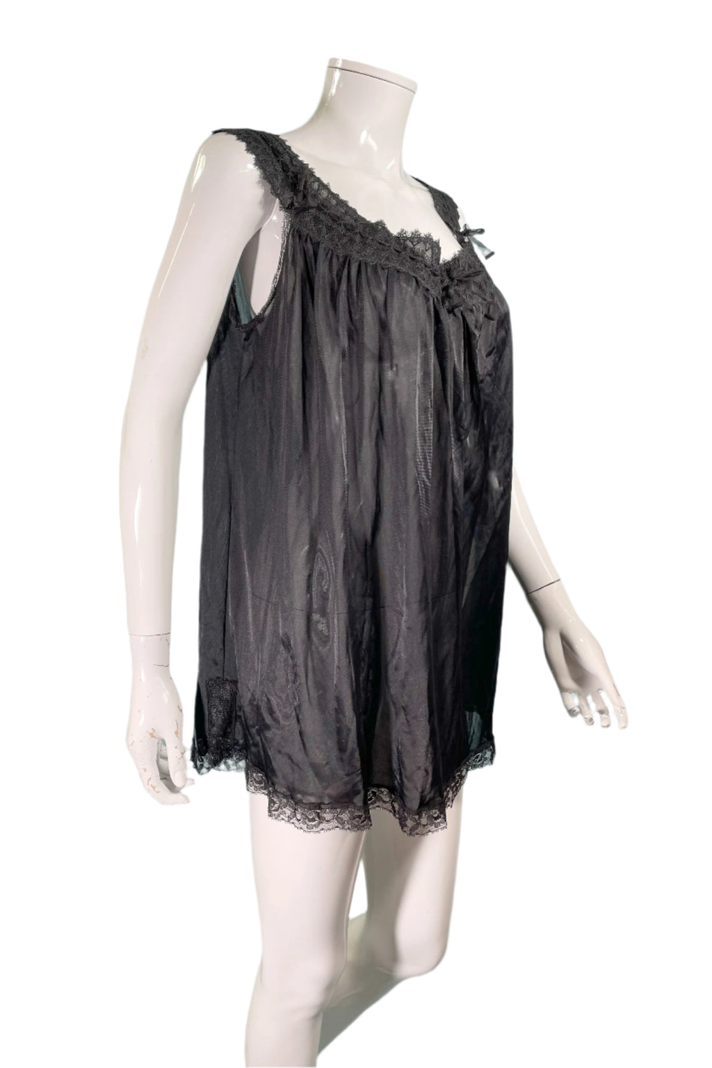 Sleeveless babydoll nightie, with lace details, side slit on each side.