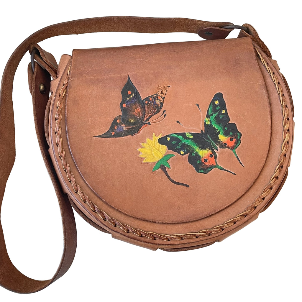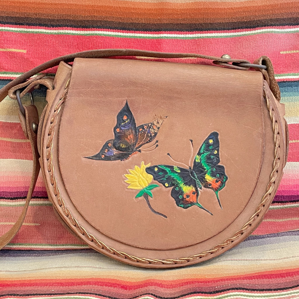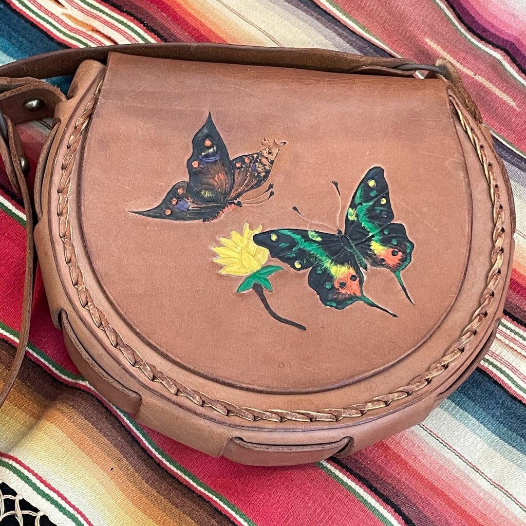 Vintage hand tooled and painted leather should bag.