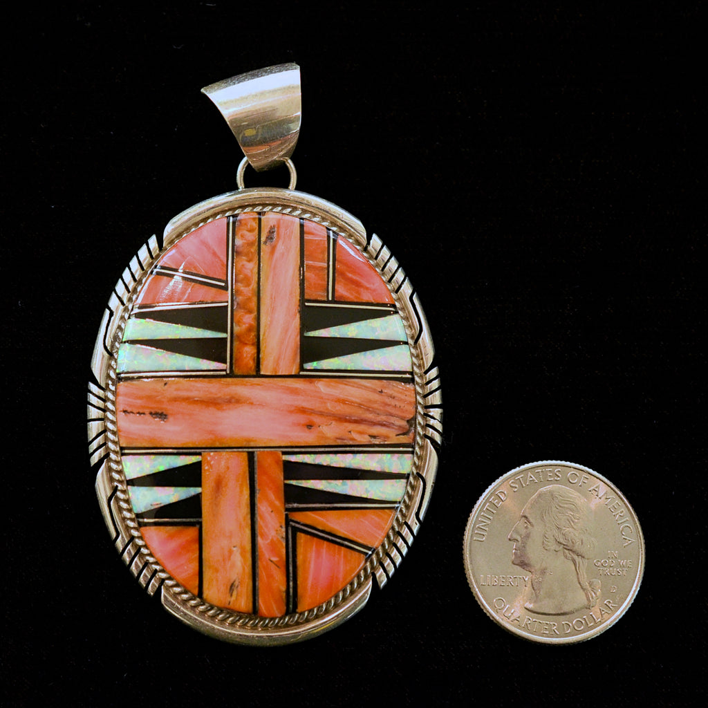 Beautiful Elouise Kee, Navajo, sterling silver inlaid pendant.