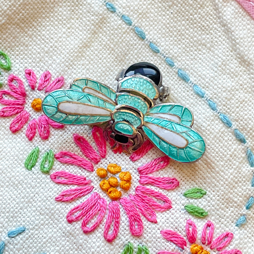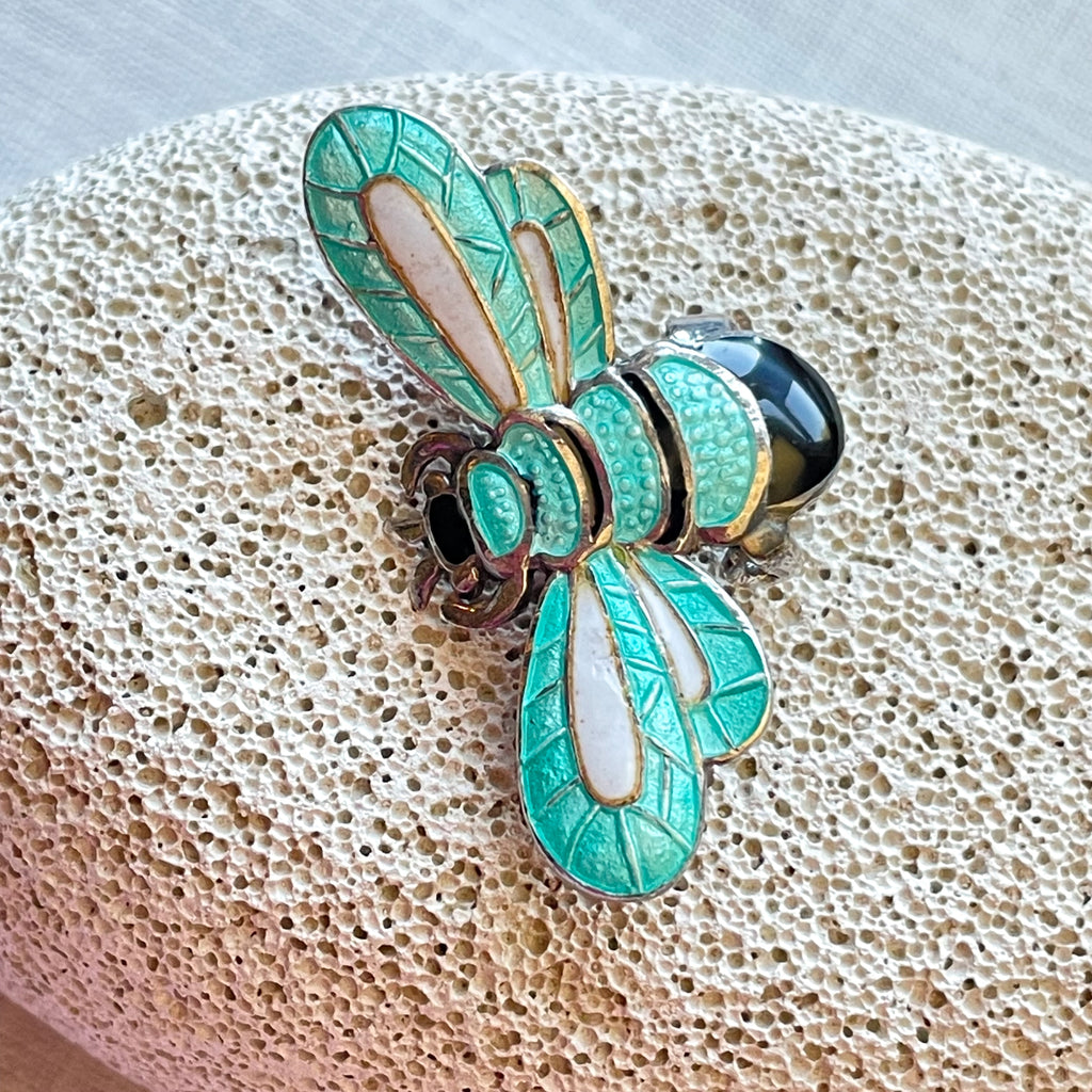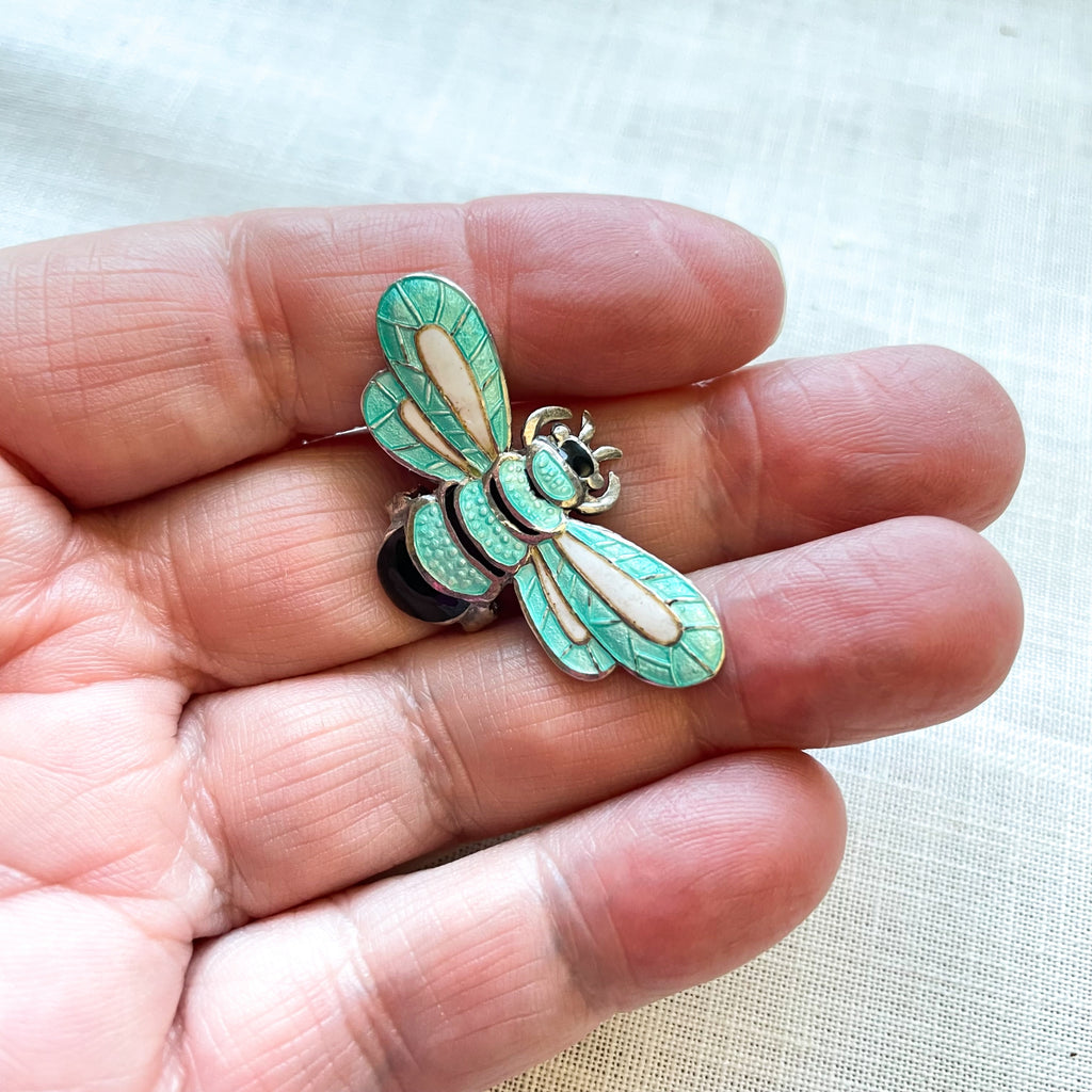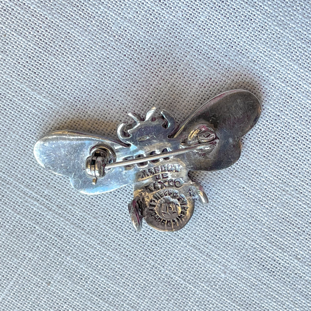 Charming Margot De Taxco signed/hallmarked enamel sterling silver BEE pin/brooch.