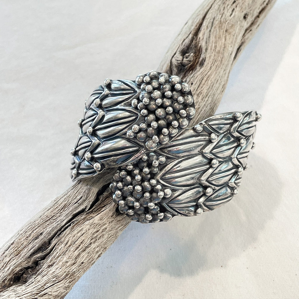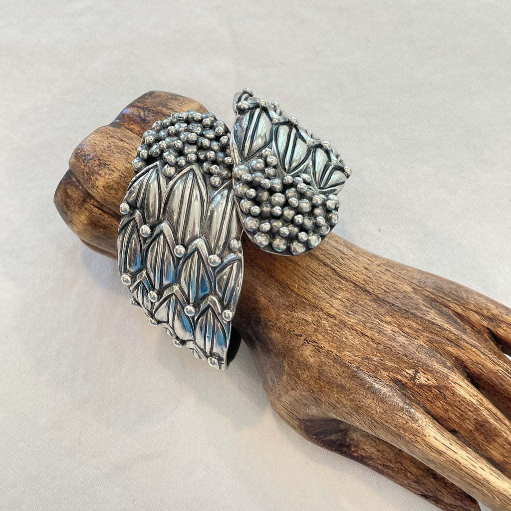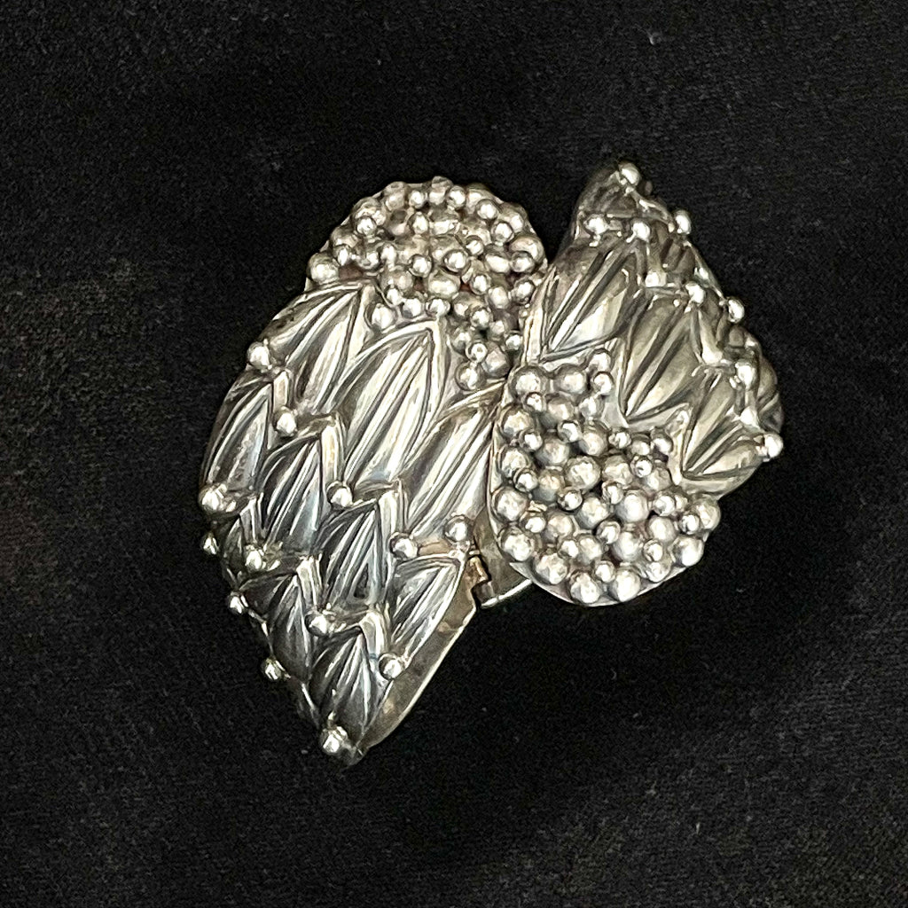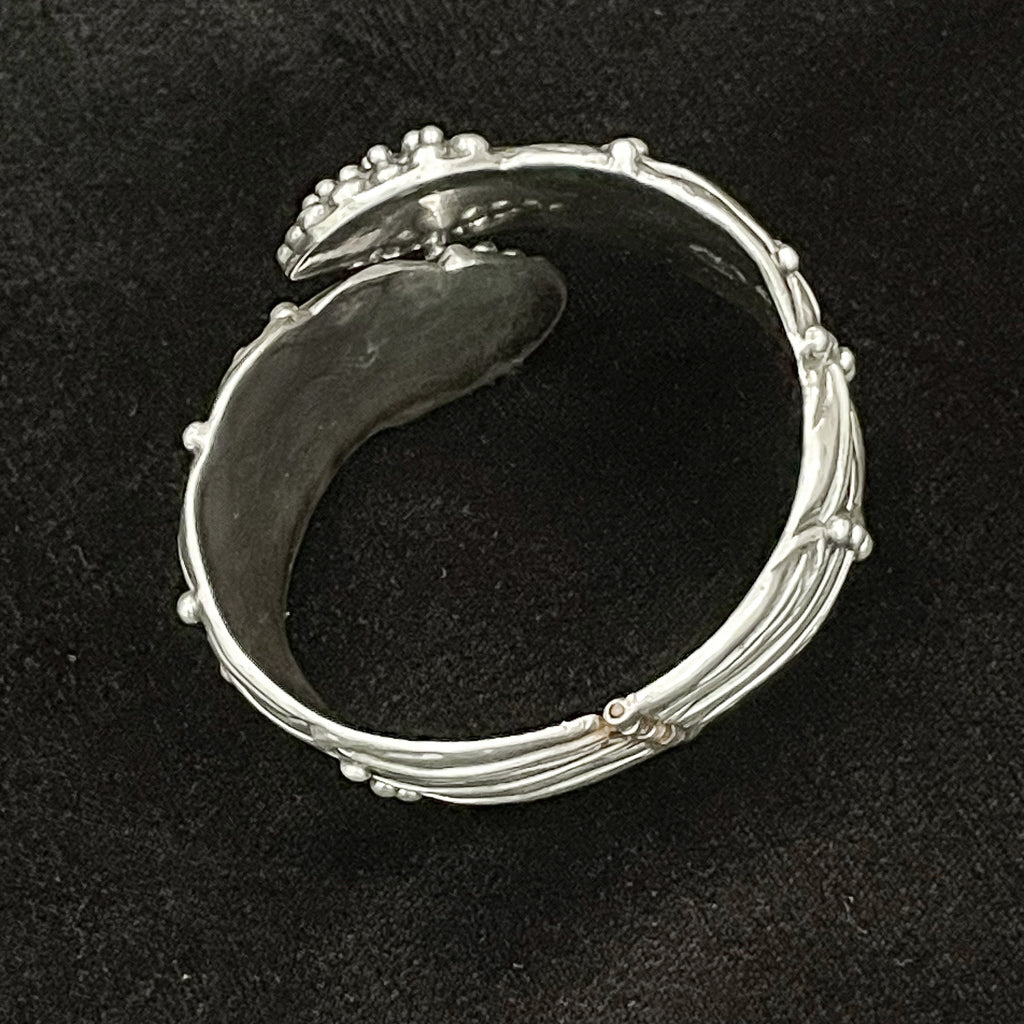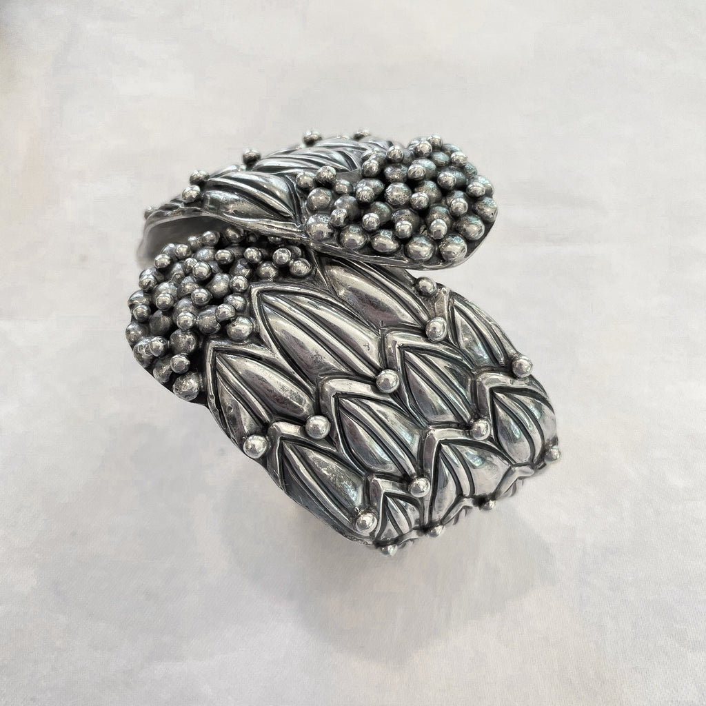 Margot De Taxco sterling silver spring hinge clamper cuff bracelet.