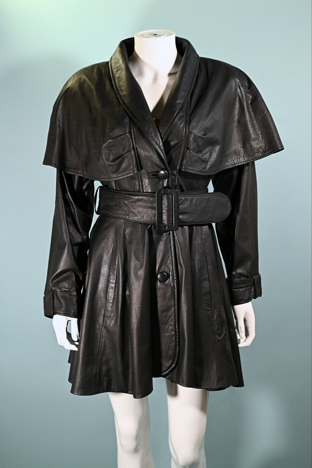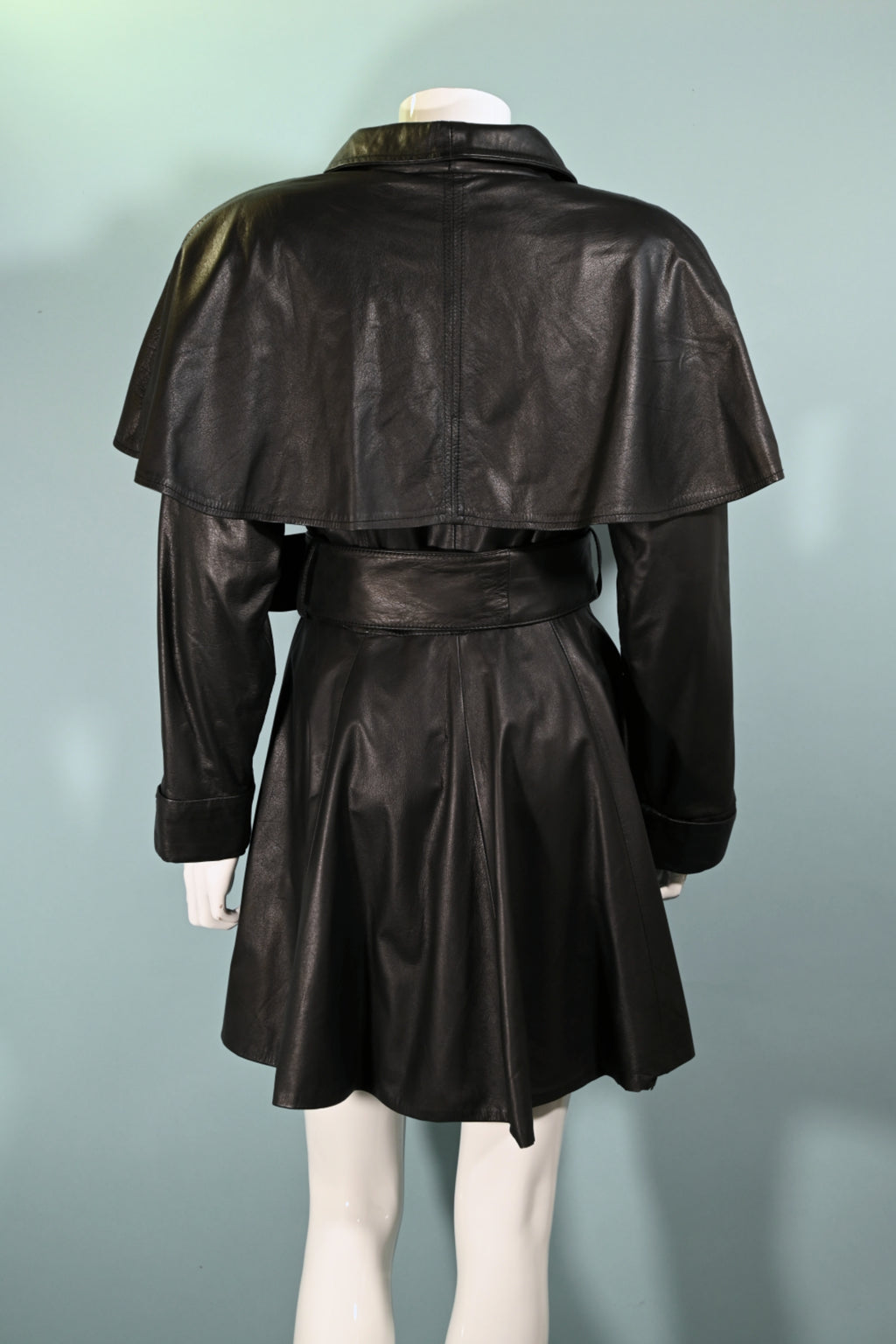 Amazing soft leather coat with a wasp waist, fit and flare design.