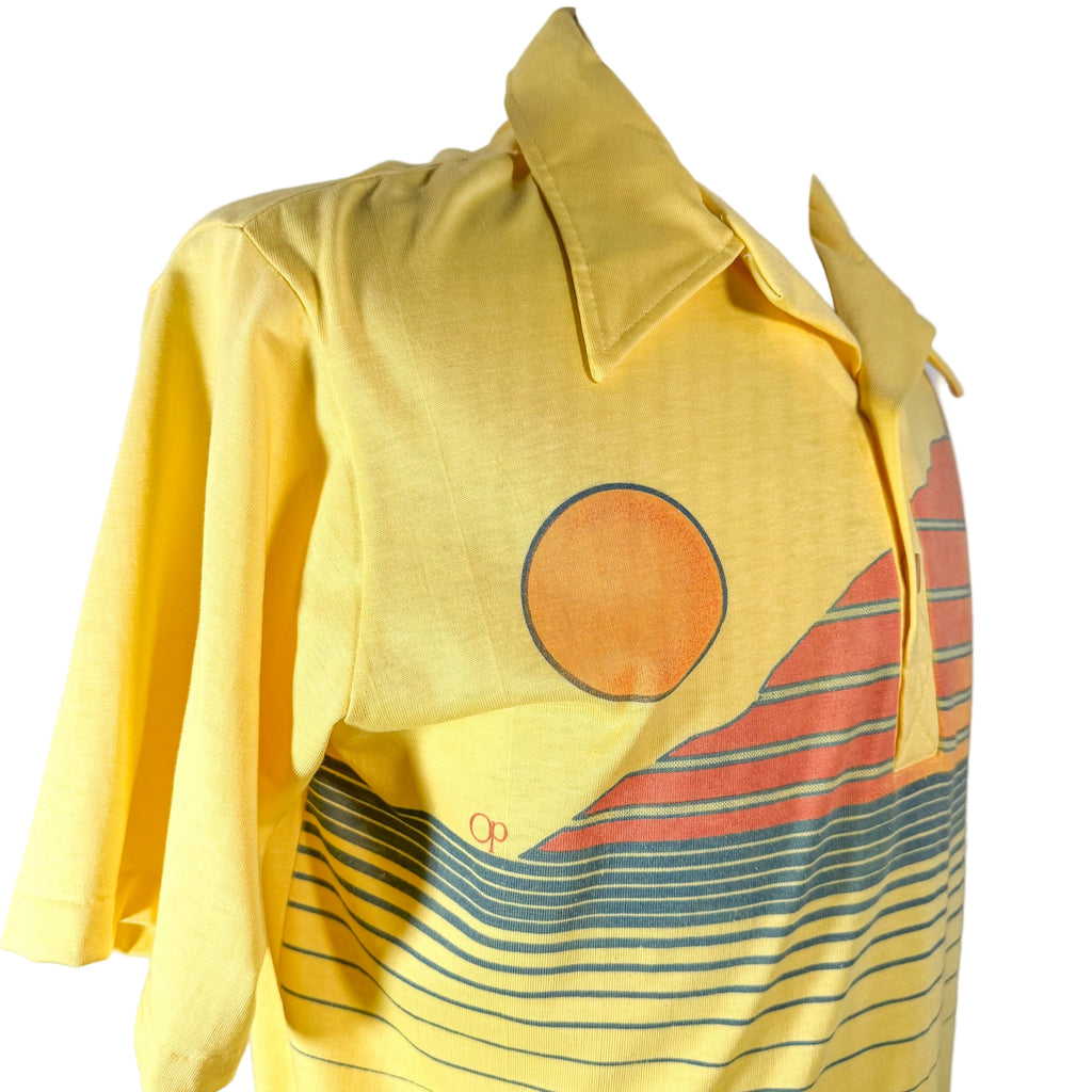 Vintage OP pullover shirt with great graphics and wood buttons.