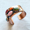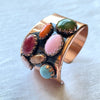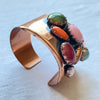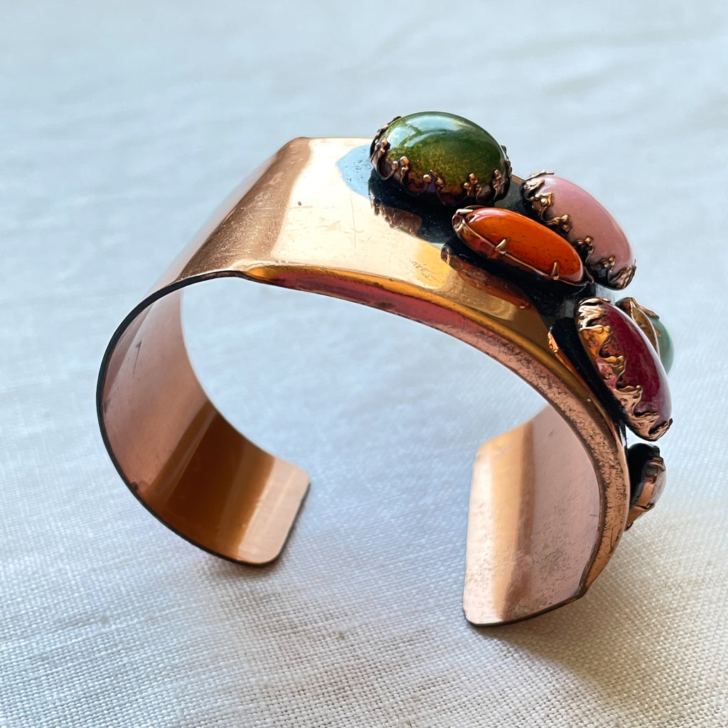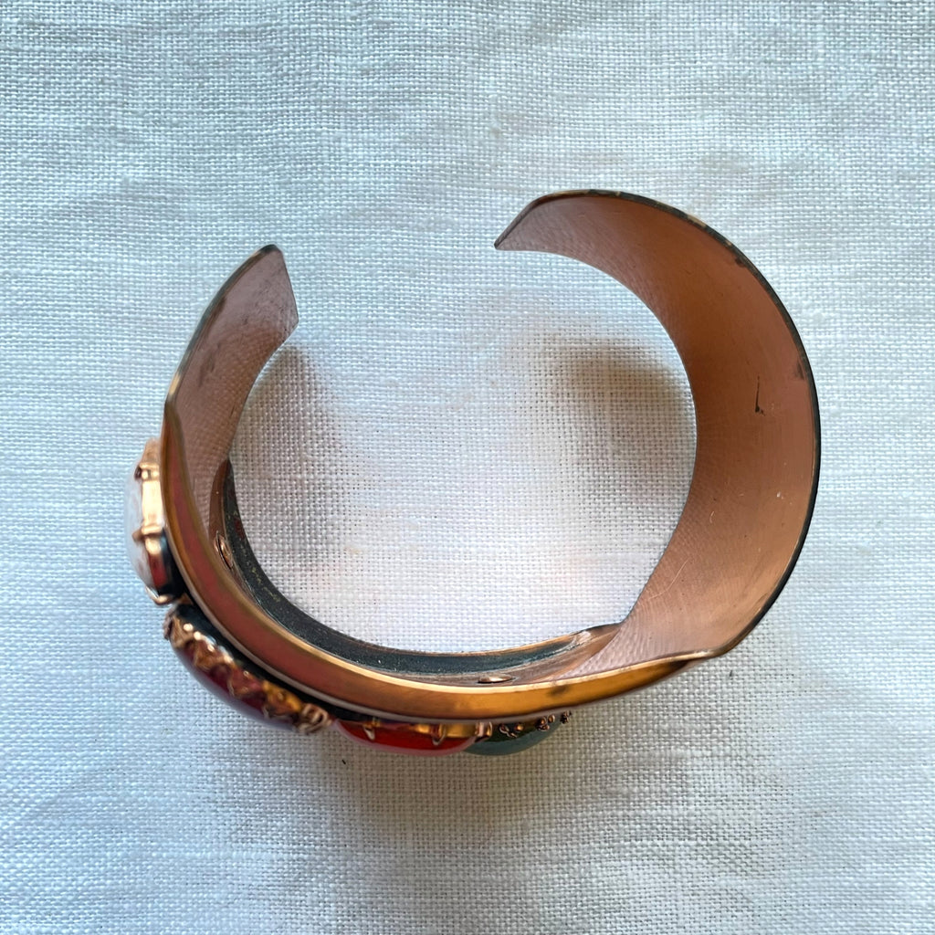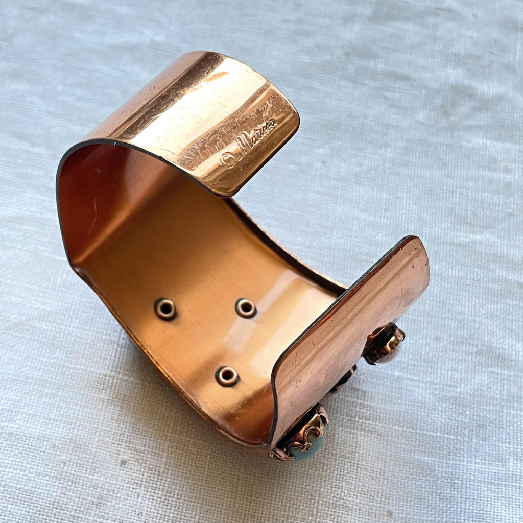 Lovely vintage copper cuff bracelet accented with faux jewels.