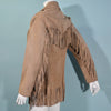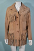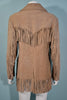 Vintage late 60s early 70s suede fringe western style jacket. Pockets at the front, fringe front, and back and on the sleeves.