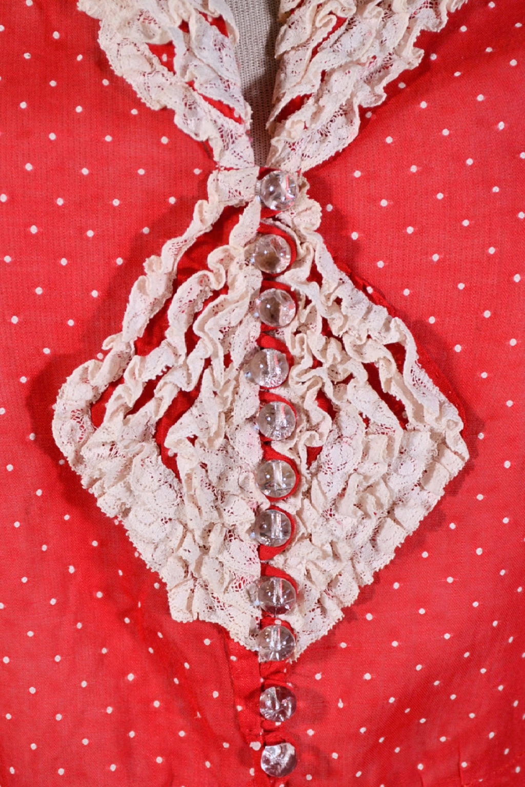 MATERIAL: Sheer cotton dotted swiss, lace.