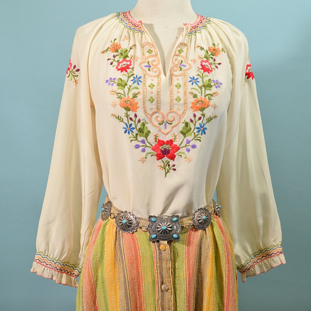 SOLD Vintage Embroidered Peasant Blouse, Penny Lane Bohemian Hippie Top S