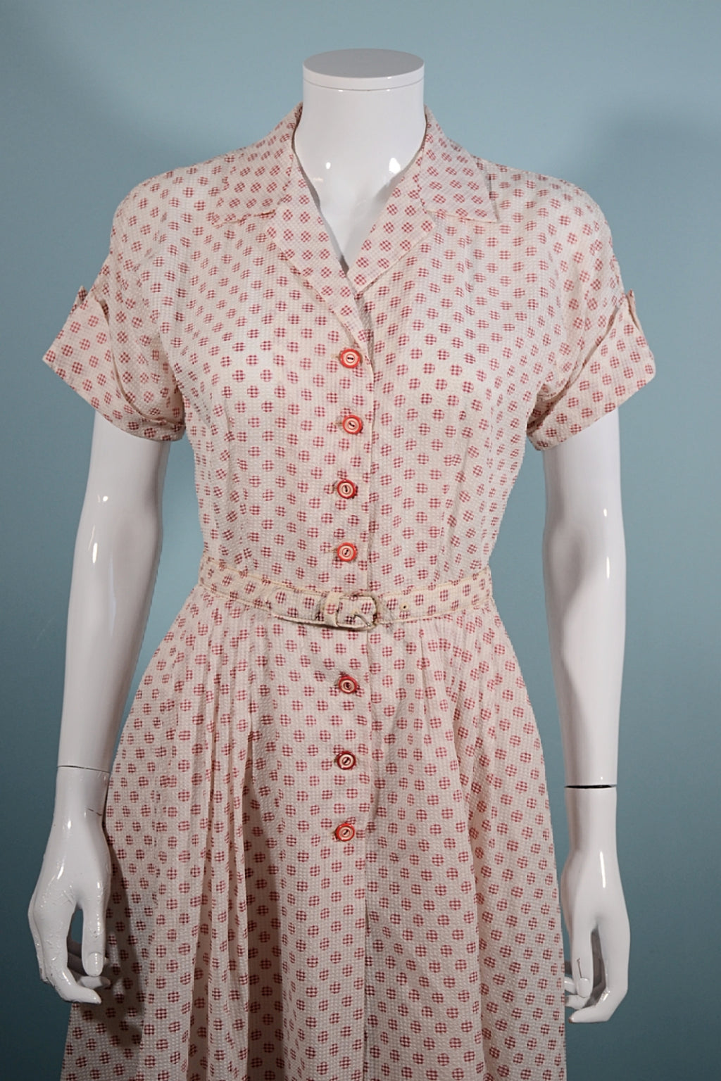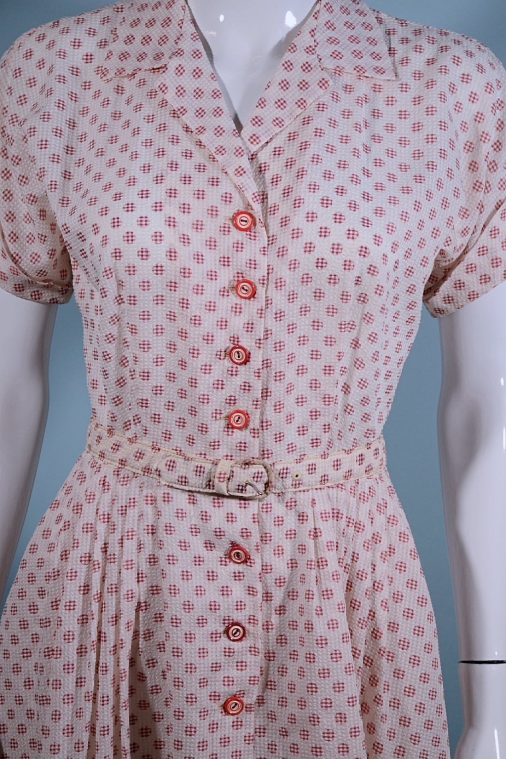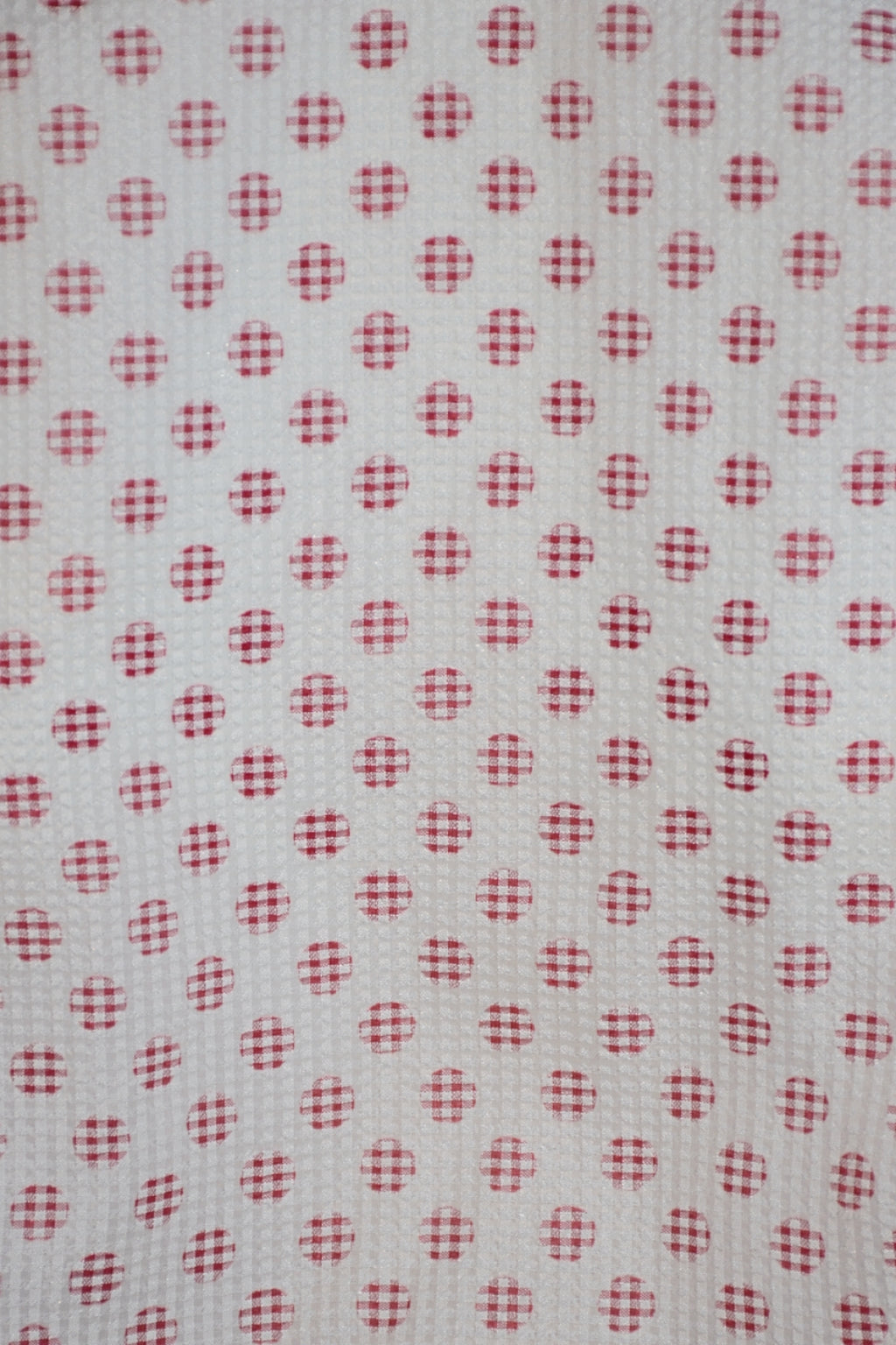 Fabulous red and white buttons up the front. Tiny button at collar with a loop closure.