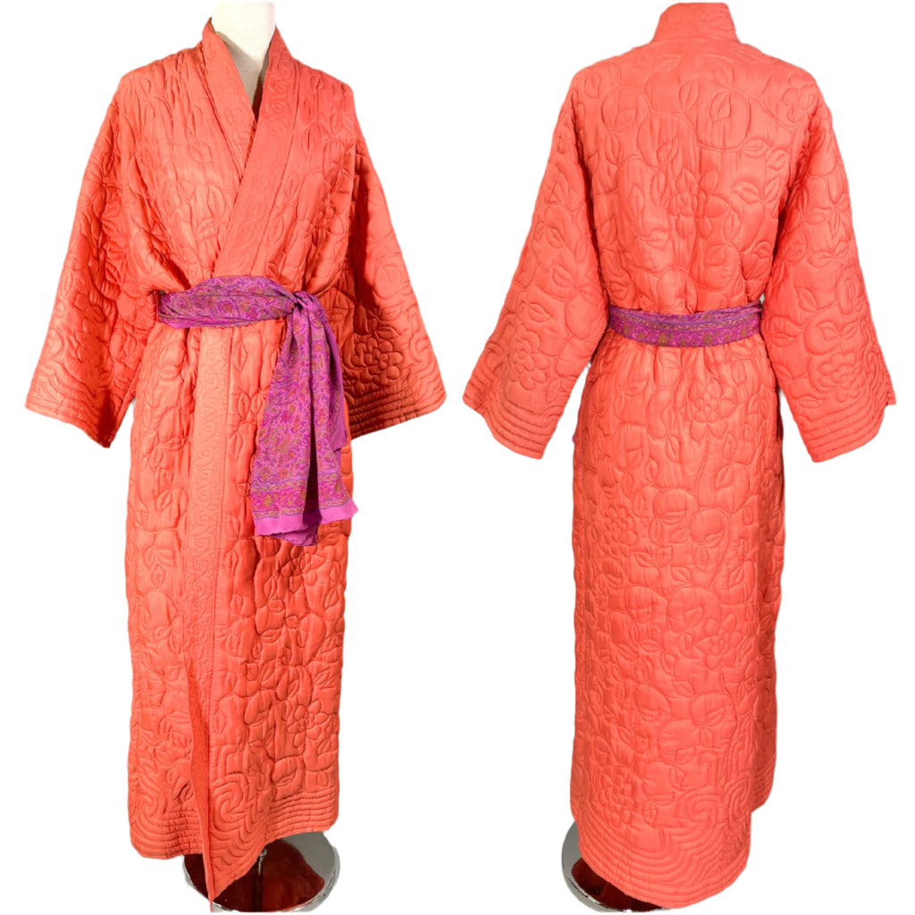 CONDITION: Very good vintage. 3 small holes, (see photo). 2 clustered together on front lapel. The robe has not been dry cleaned. It has been stored for over 20 years.