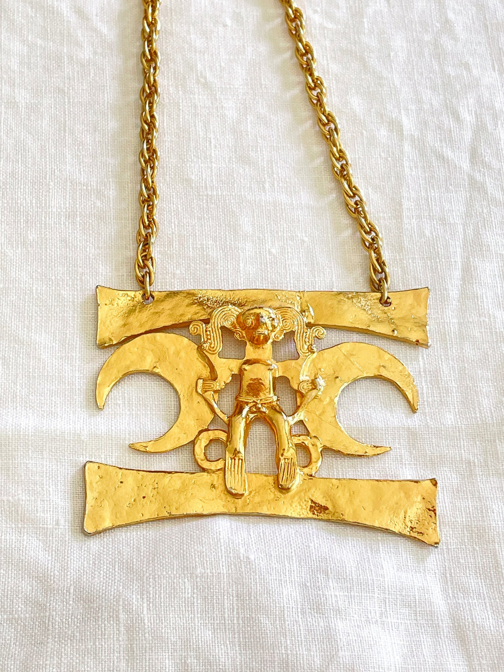 Vintage Kenneth Lane Mayan Ethnic Pendant Necklace