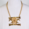 Beautiful rich gold tone large Mayan style pendant necklace.