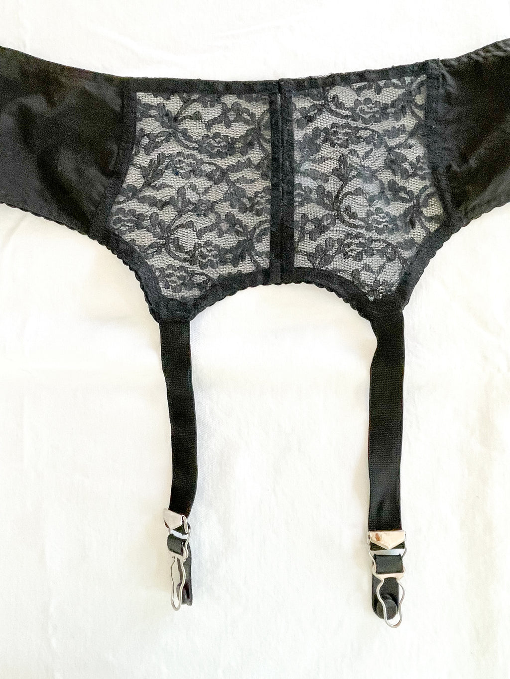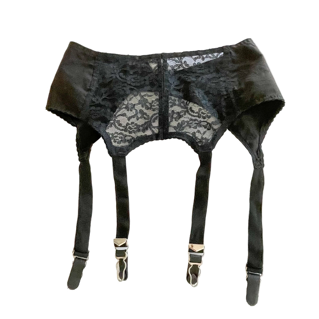Vintage 50s/60s black cotton & lace garter belt.
