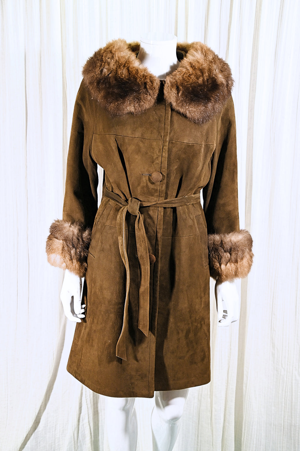Vintage 60s soft suede coat with fur collar and cuffs.