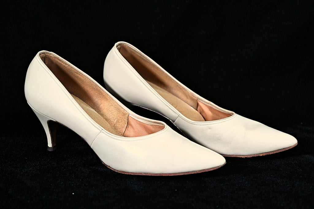 Man made upper, vinyl sock cushion, cellulose cushion insole, leather soles.