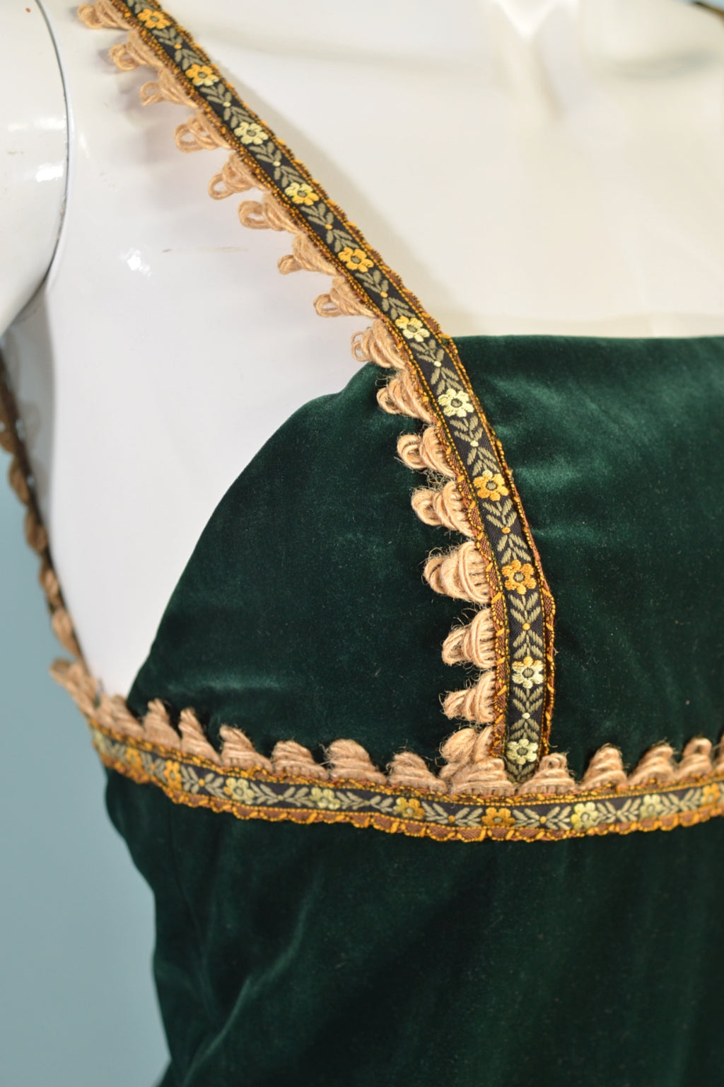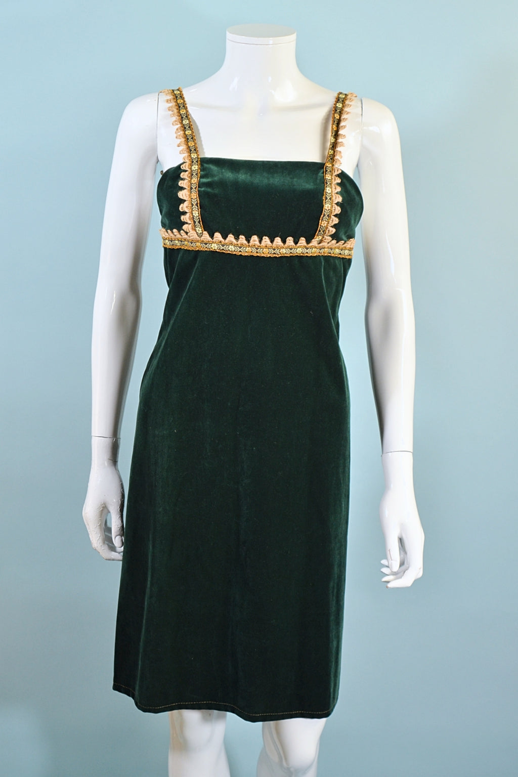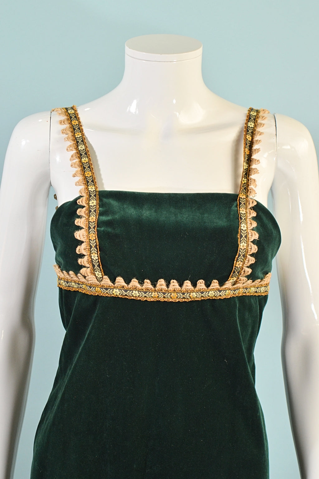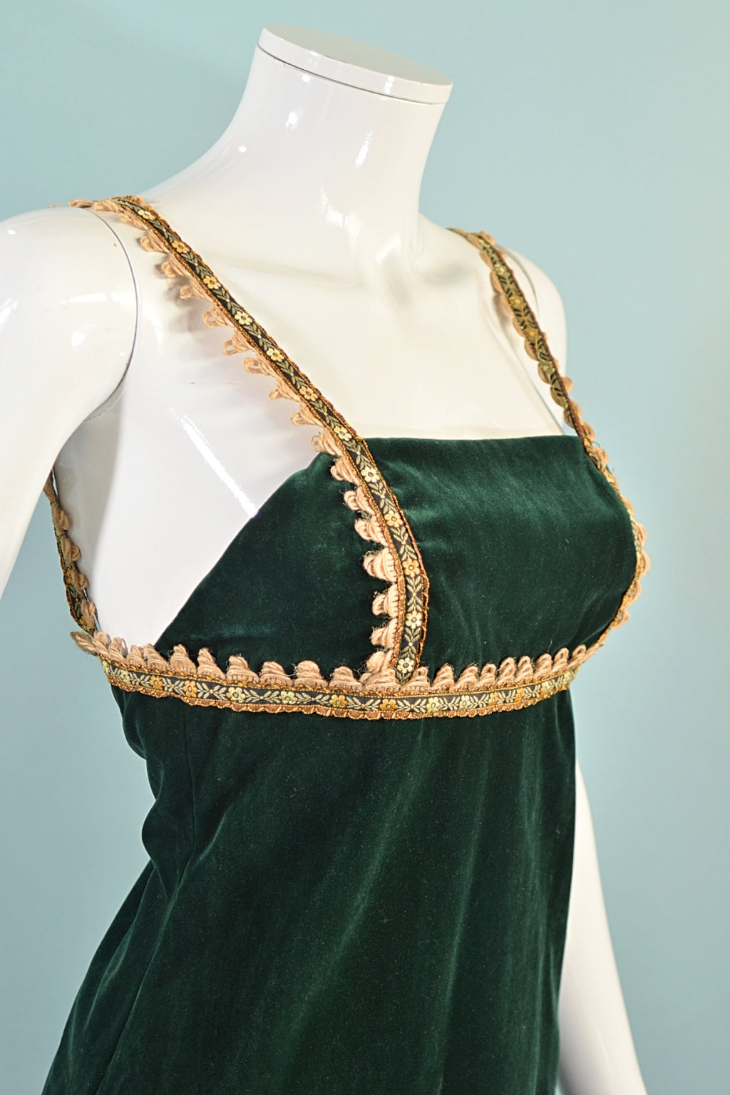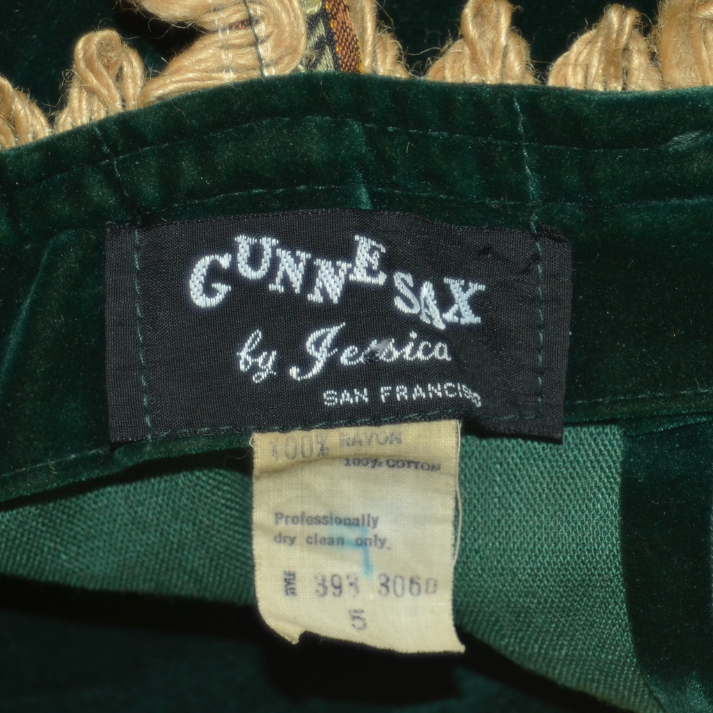 SOLD Vintage 60s Green Velvet Black Label Gunne Sax Mini Dress XXXS