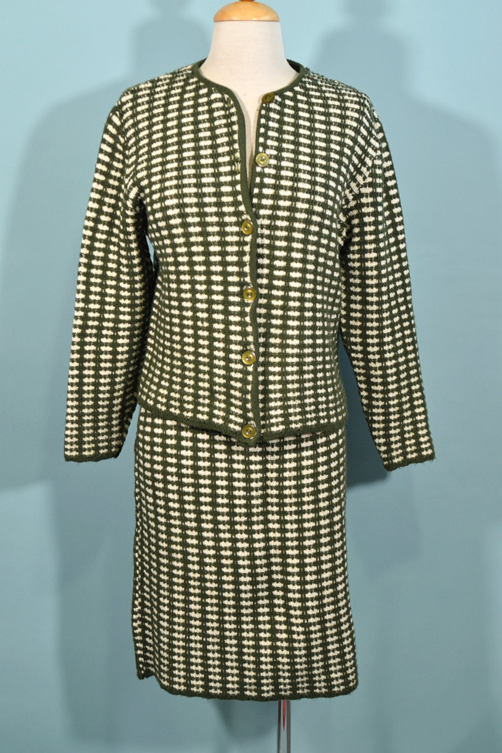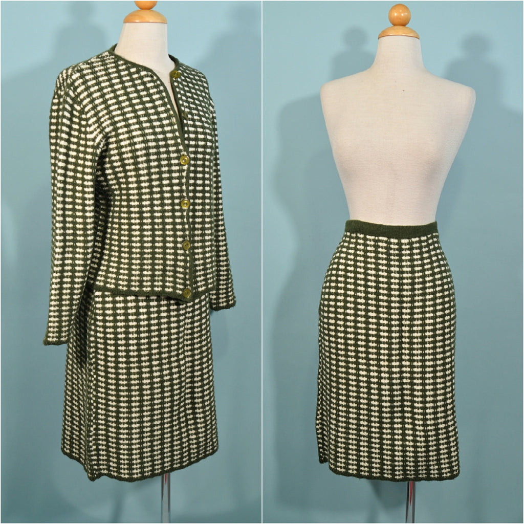 Vintage 1960s knit 2 piece suit consisting of jacket and skirt.