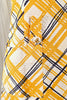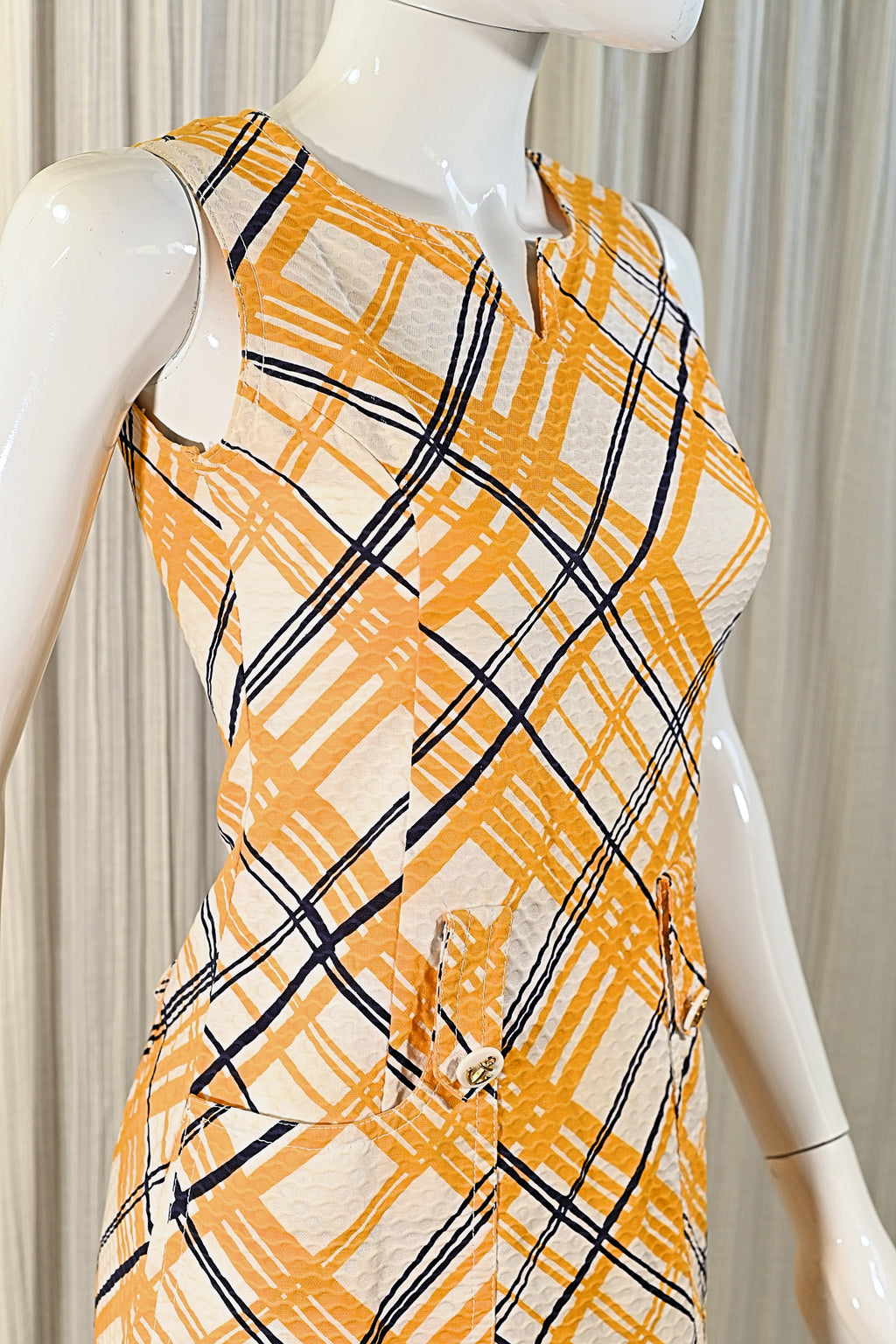 Rounded darts on the front of the dress.