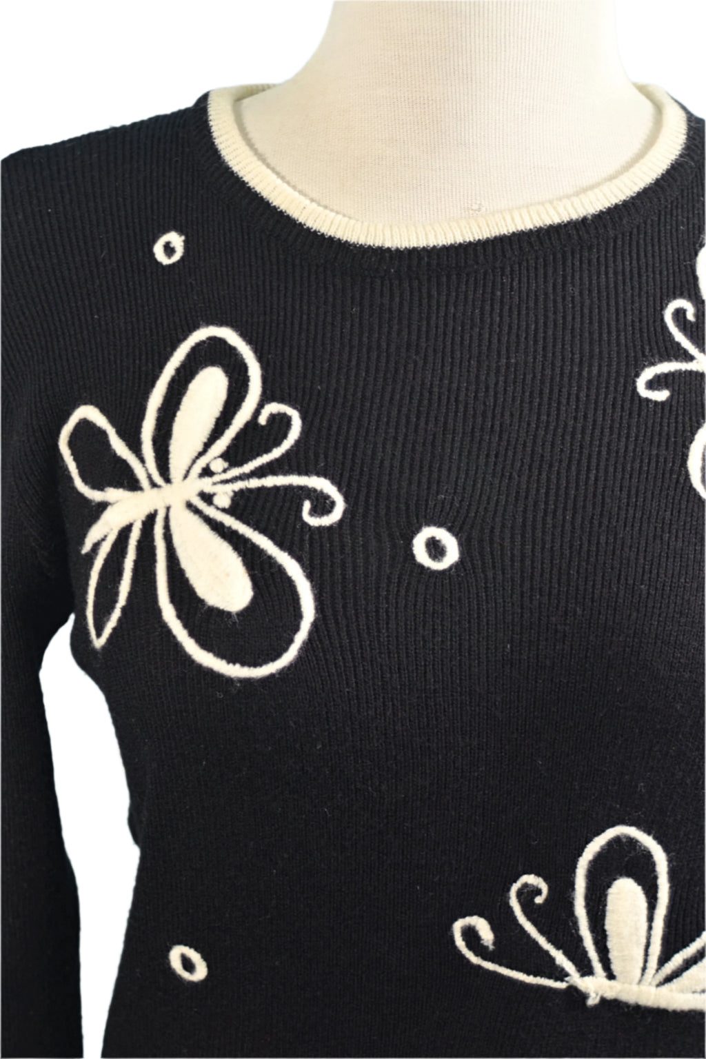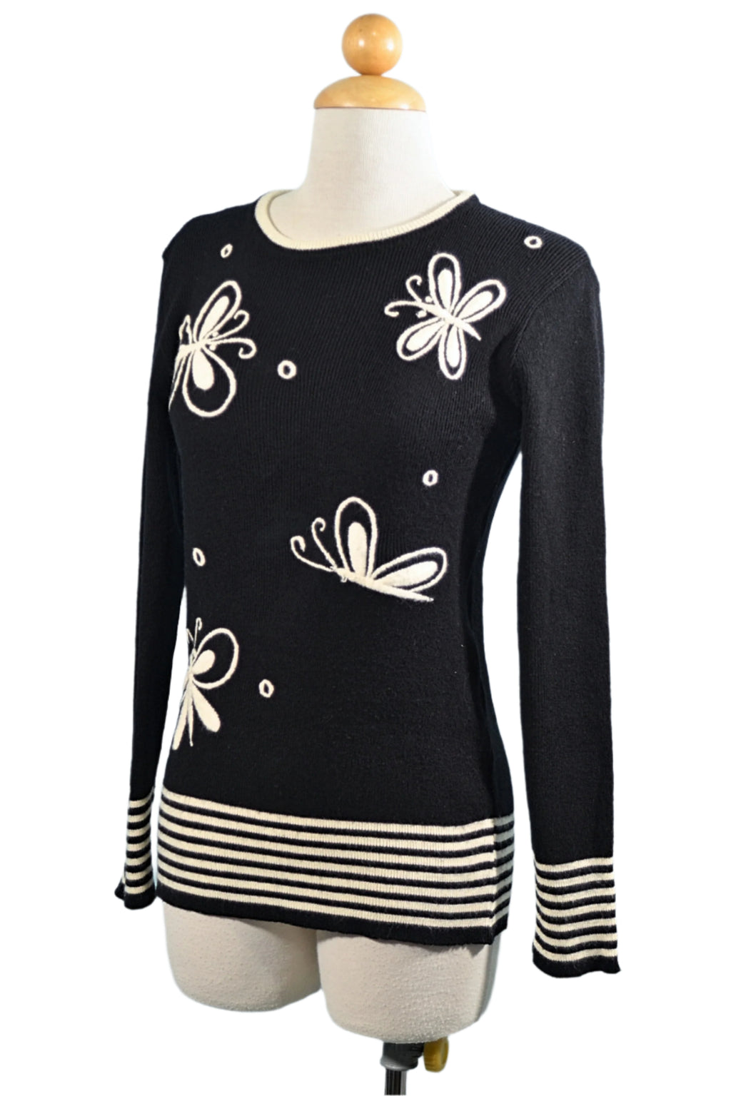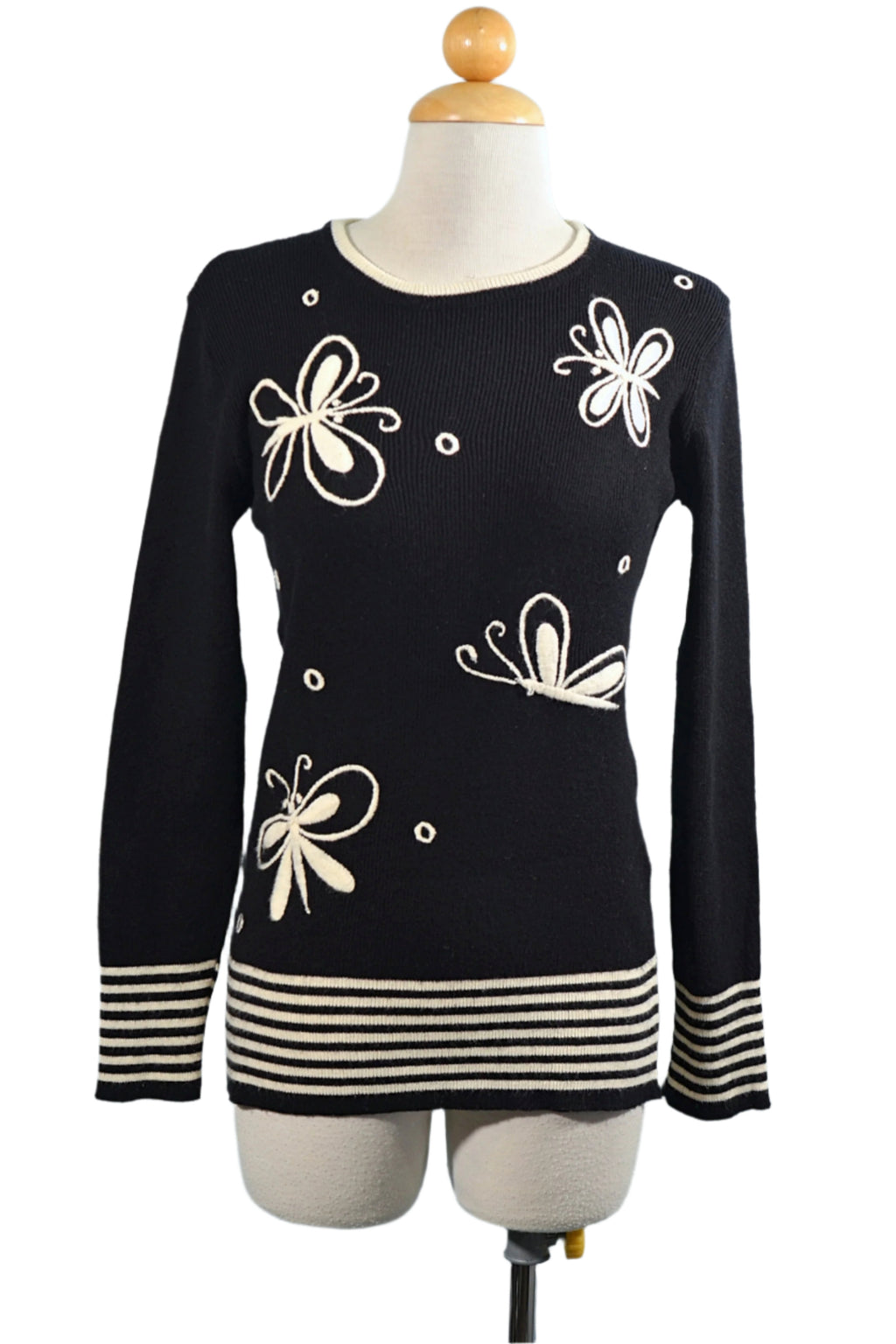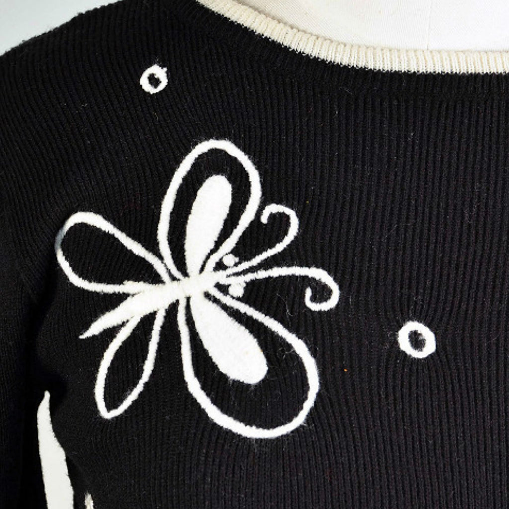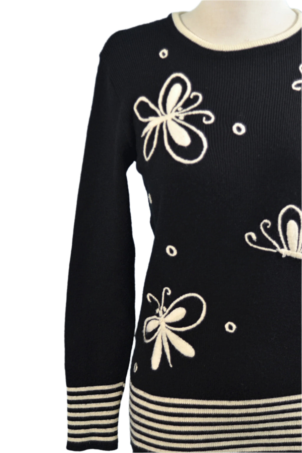 Black & white vintage sweater from the 60s hand embroidered with butterflies.