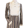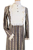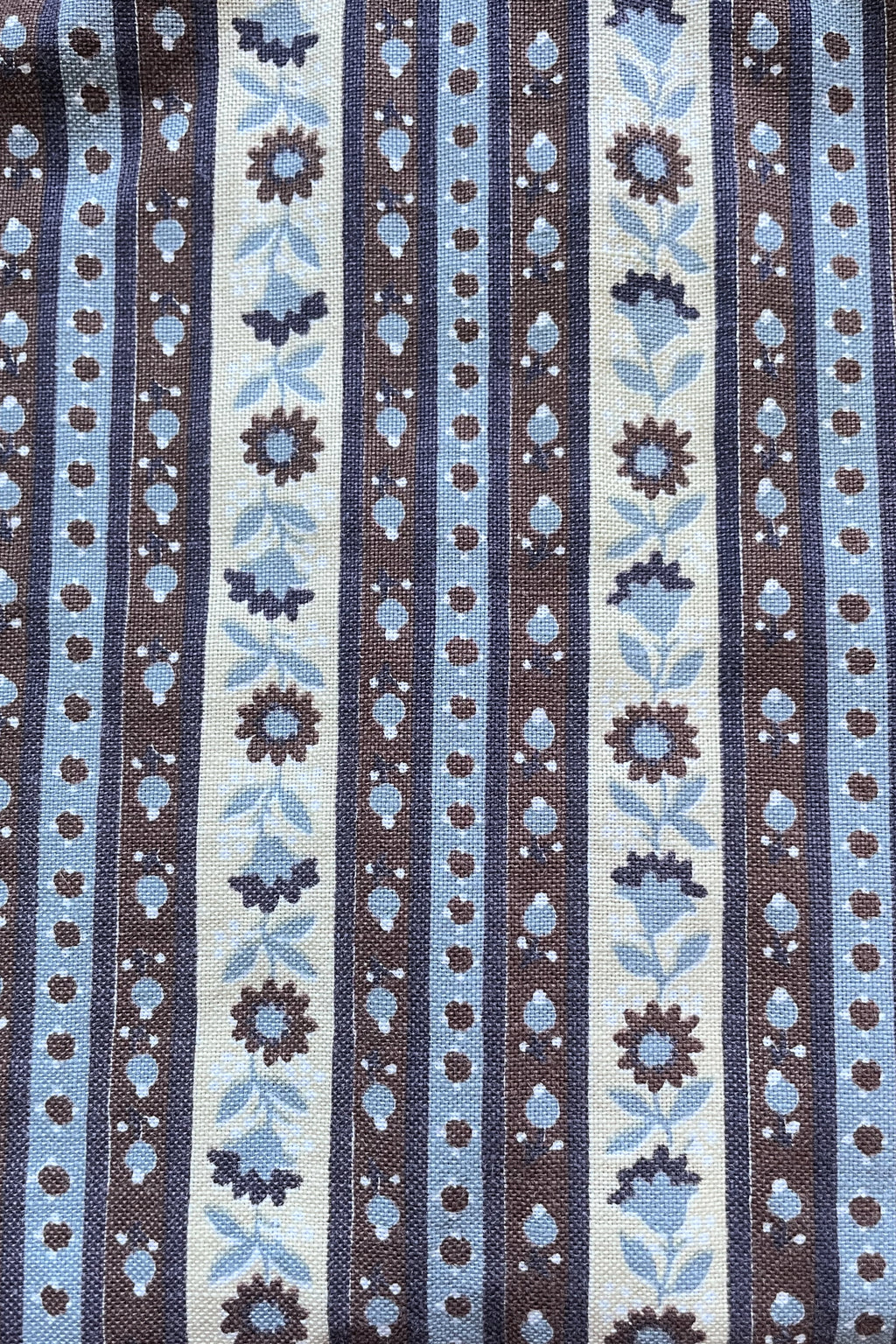 Brown, blue-grey, white flower & stripe pattern. Cotton fabric.