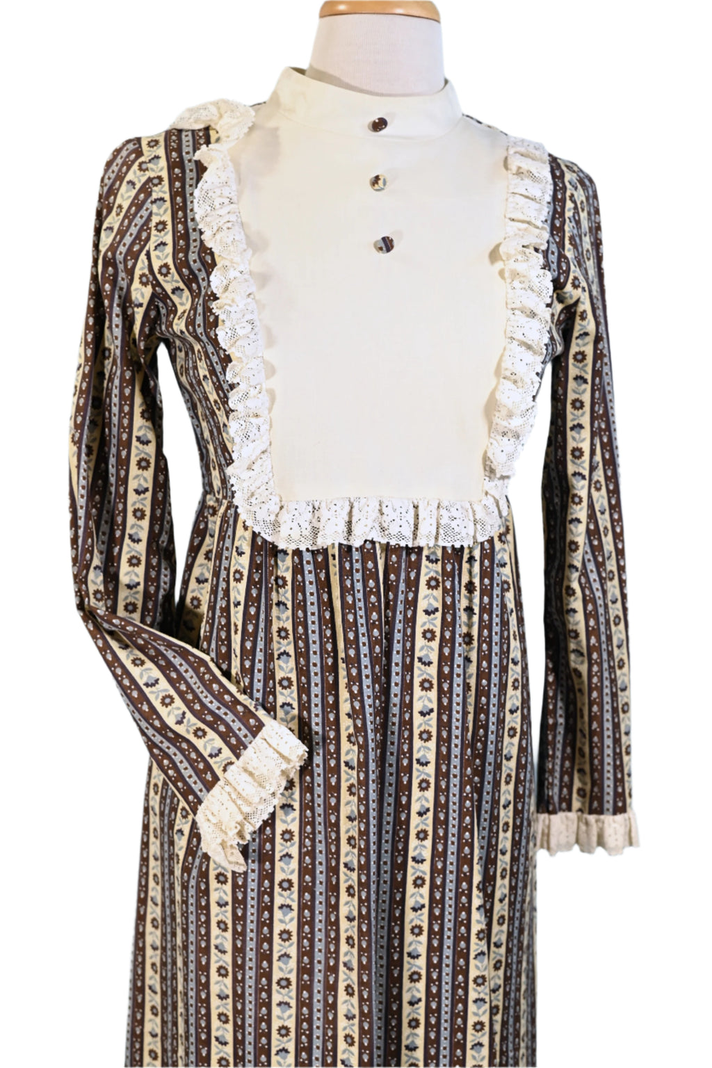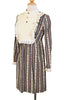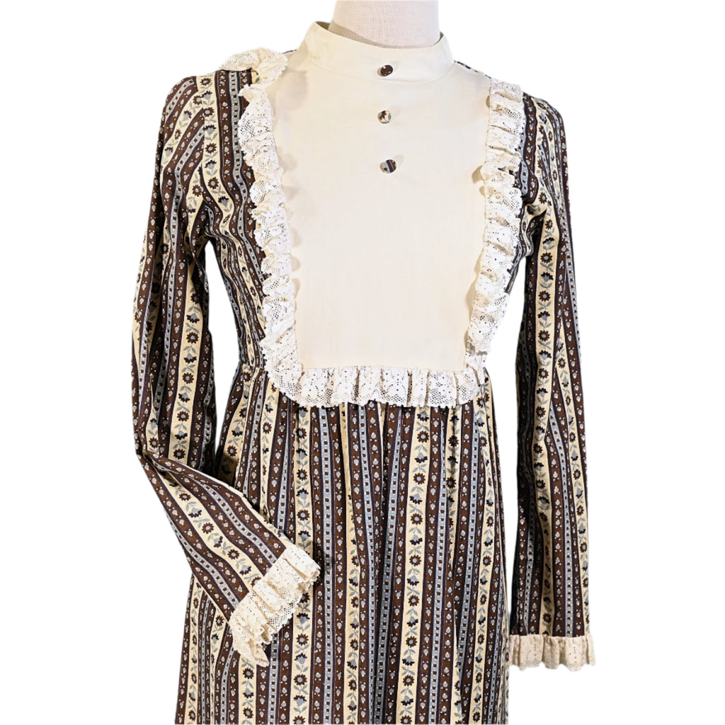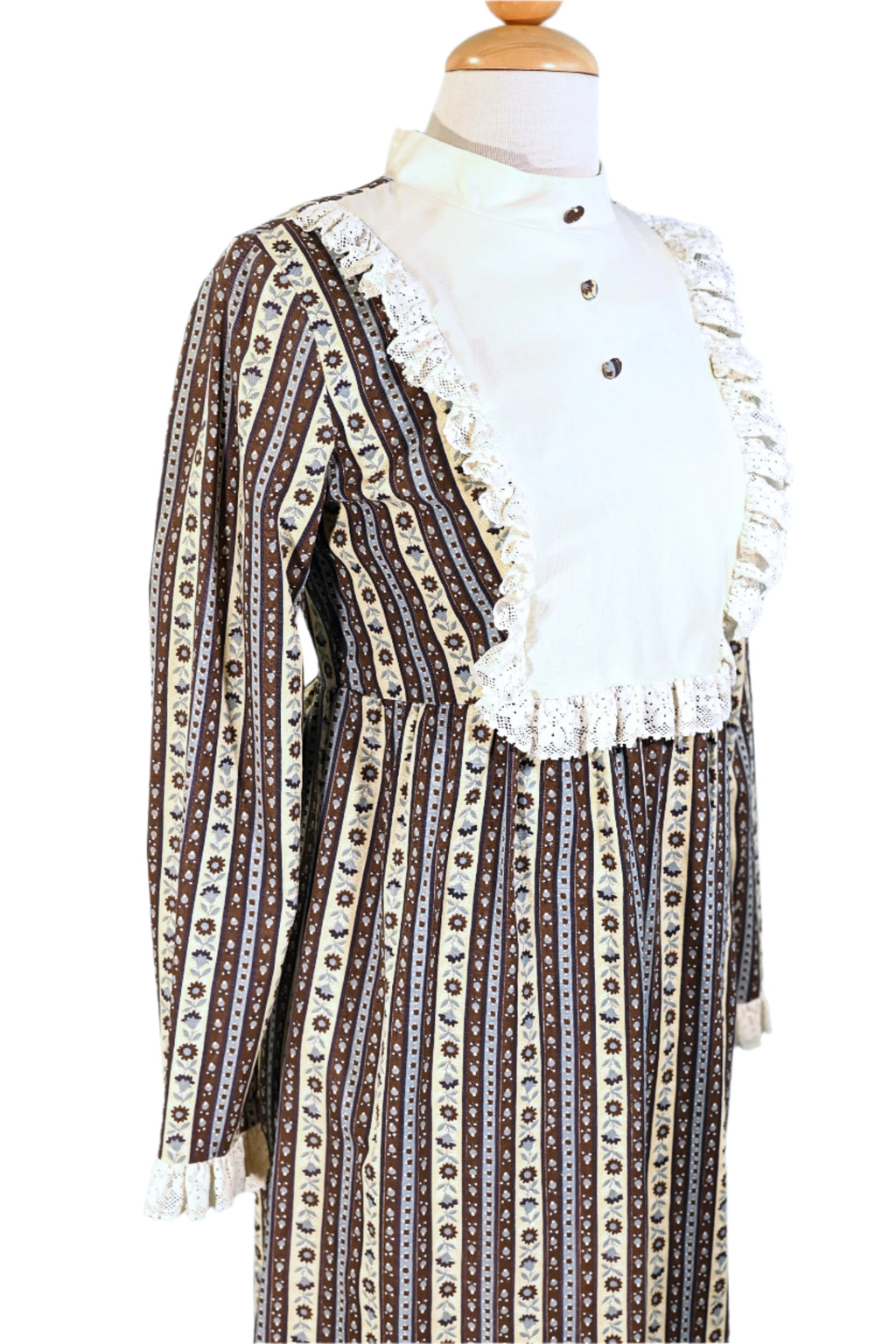 Adorable 60s Mod shift dress with a bib front and lace accents.