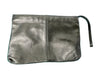 Flat bag, zipper top, fabric lined. Small zip pocket on interior.