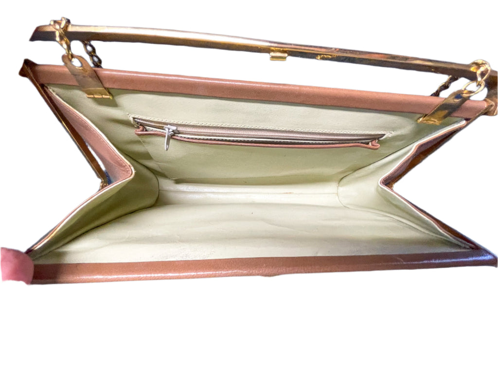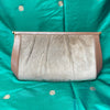 Concealed brass thin metal strap. 1 interior zip pocket.