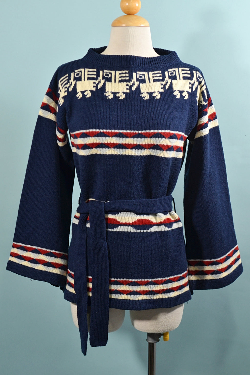 SOLD Vintage 70s Southwestern Mayan/Aztec Ethnic Print Tunic Sweater M