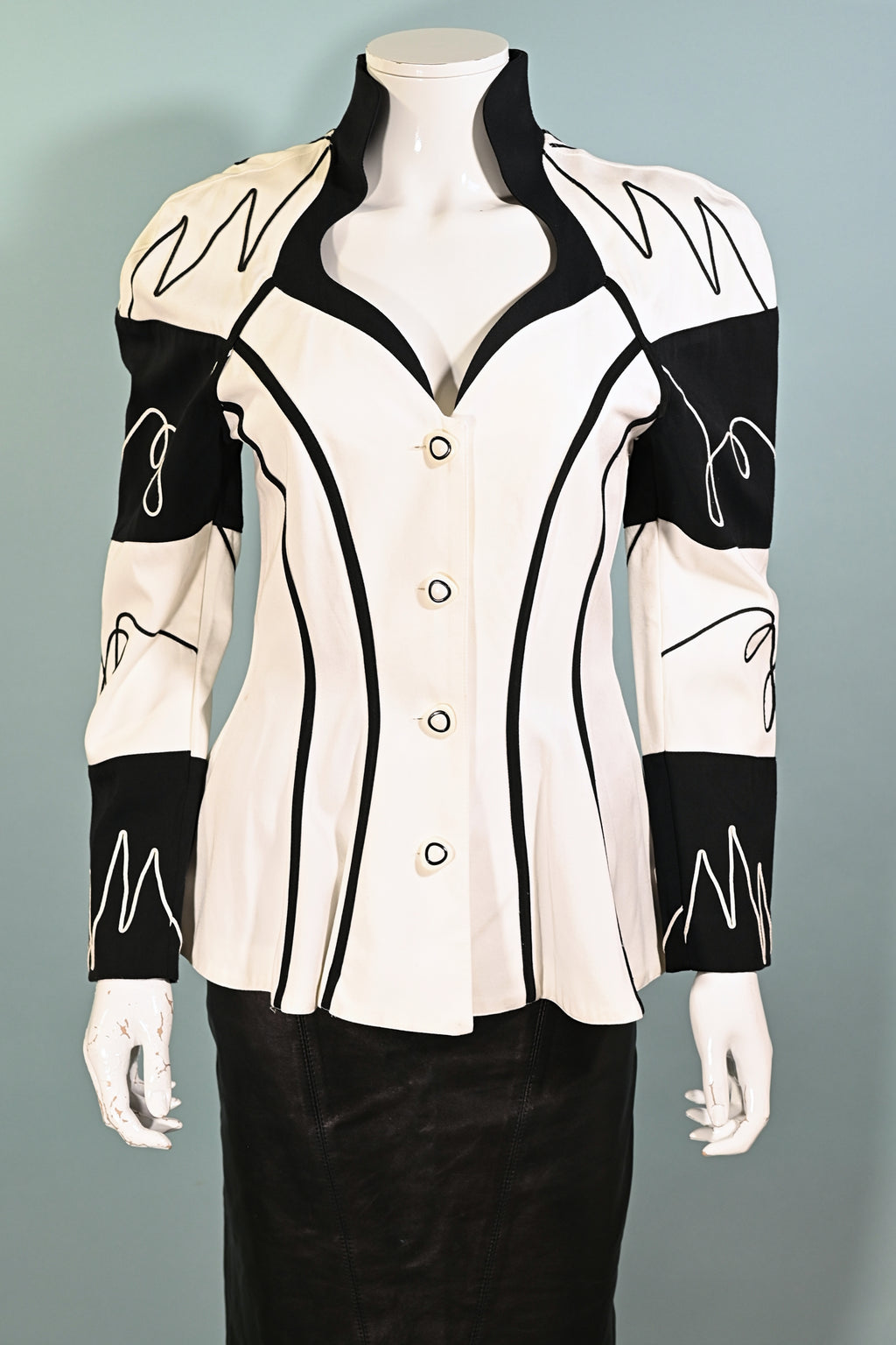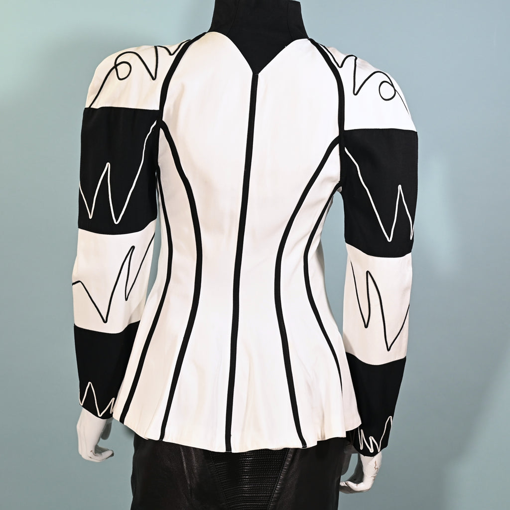 SOLD Vintage 80s Black/White Post Modern Blazer, New Wave Peplum Jacket S