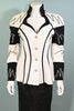 Vintage 80s black and white blazer with geometric modernist patterns.