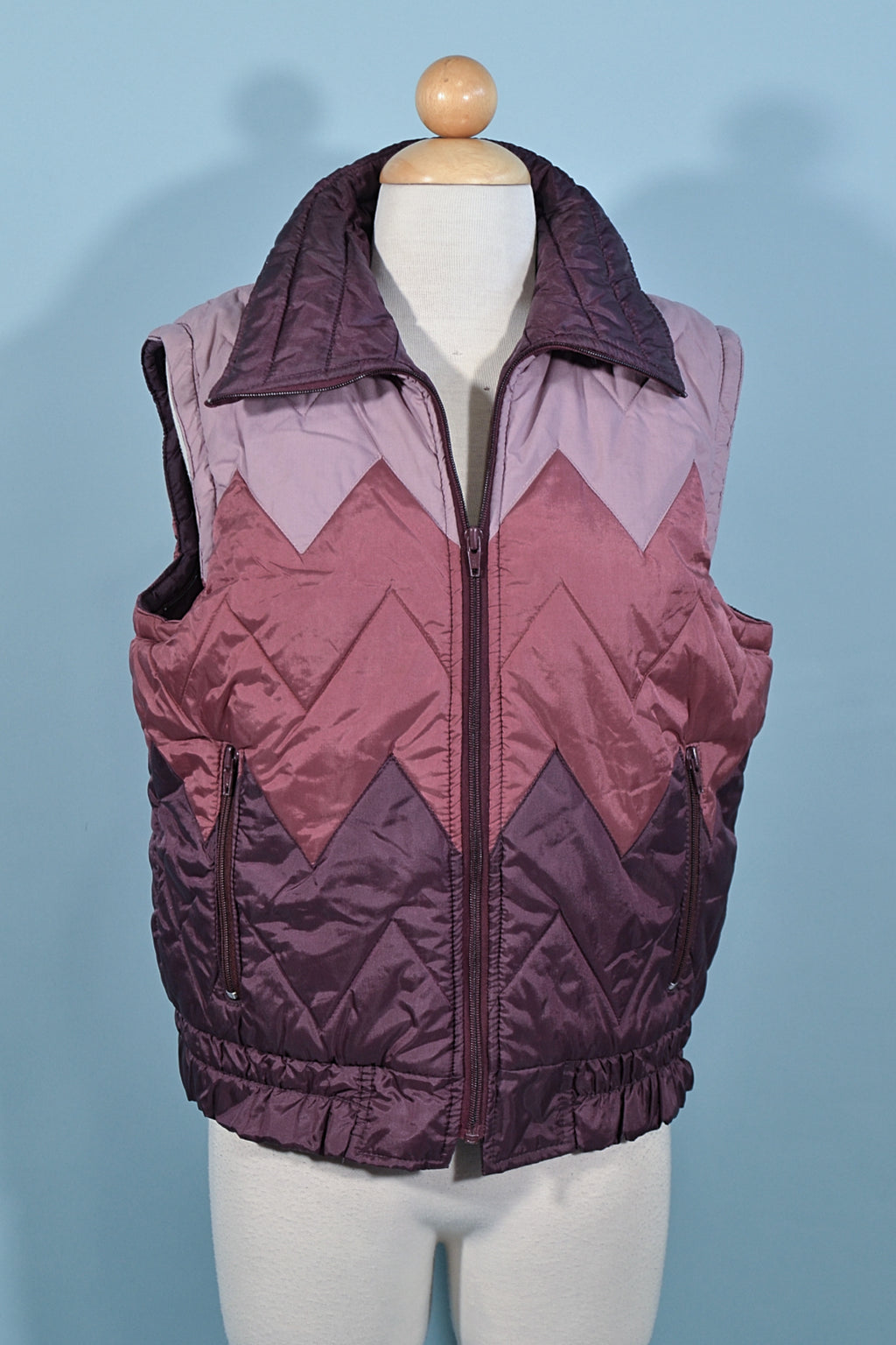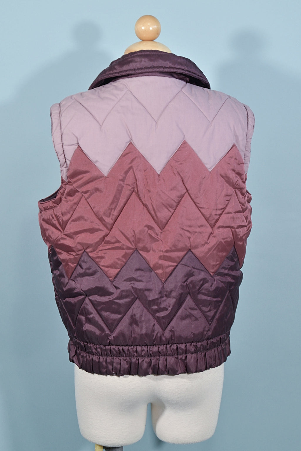 Vintage 80s puffer vest with a topstitched chevron pattern.