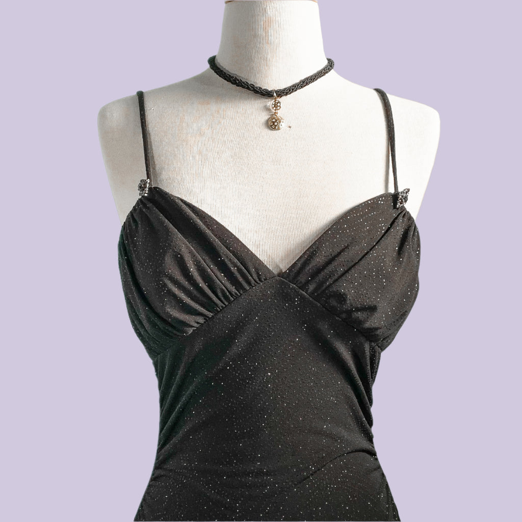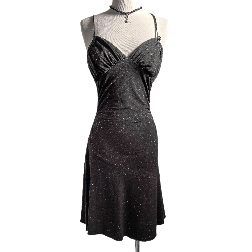 Vintage 90s Black Sparkle Party Dress, Night Triangles S