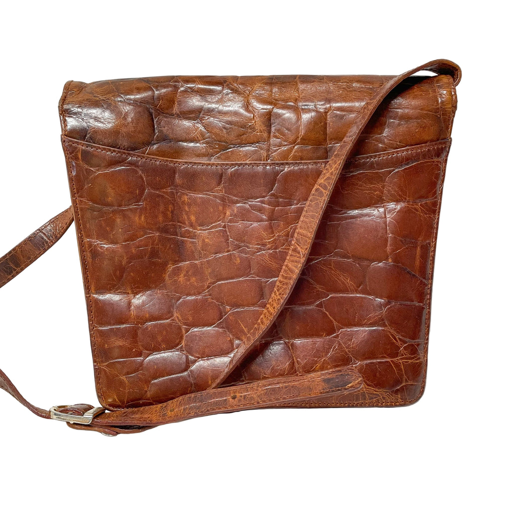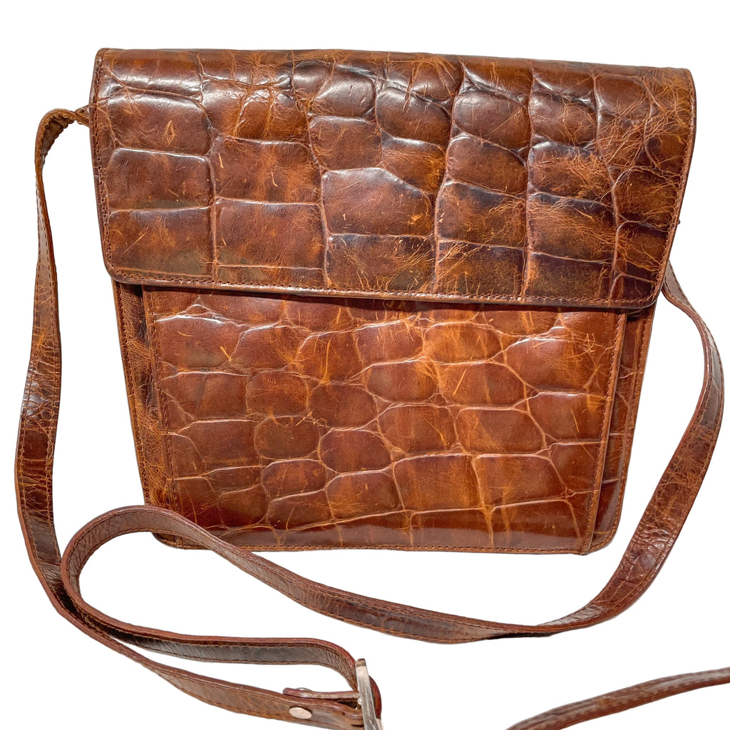 Vintage 90s Genuine Leather Faux Crock Pattern Shoulder Bag