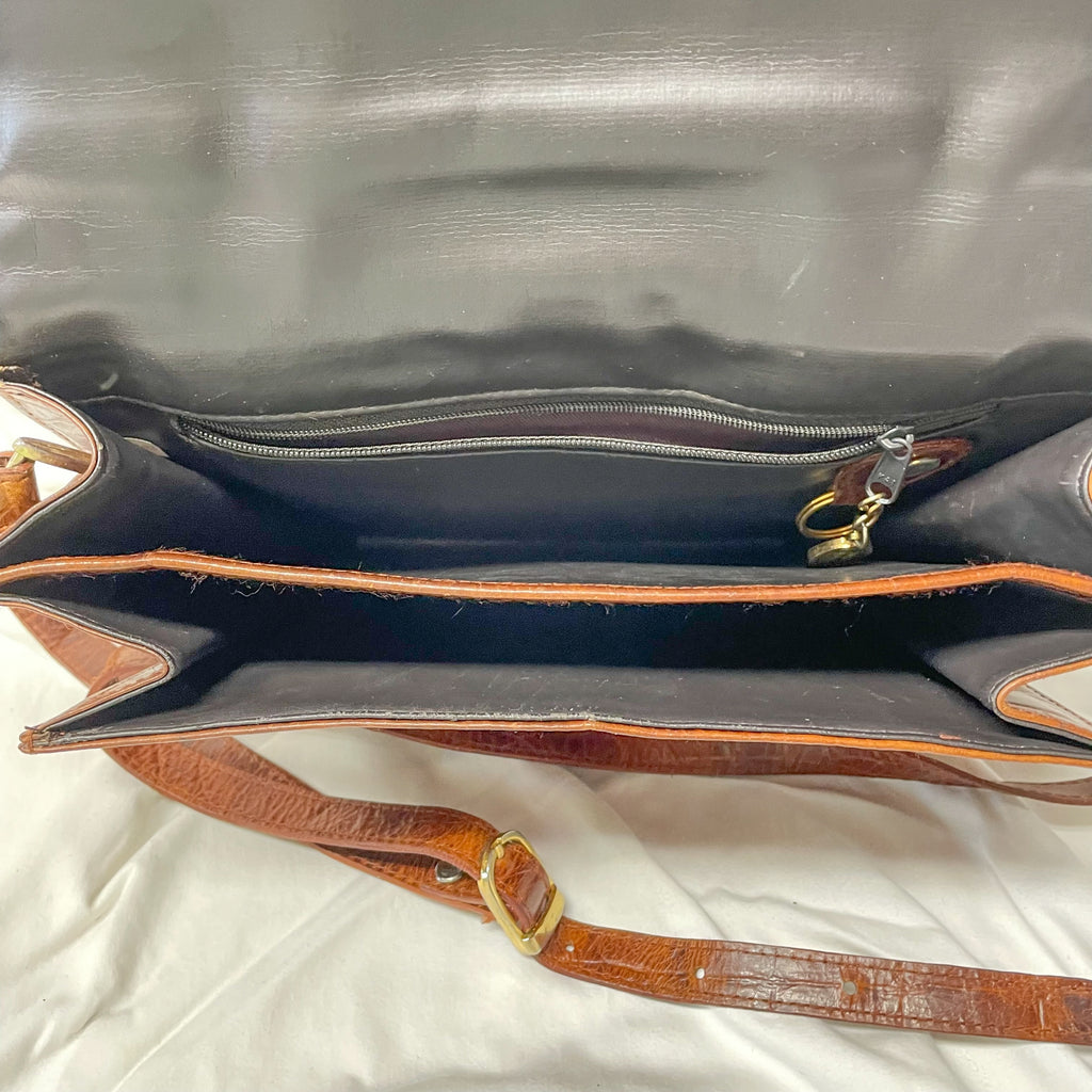 Vintage 90s pressed leather crock pattern handbag with a shoulder strap.
