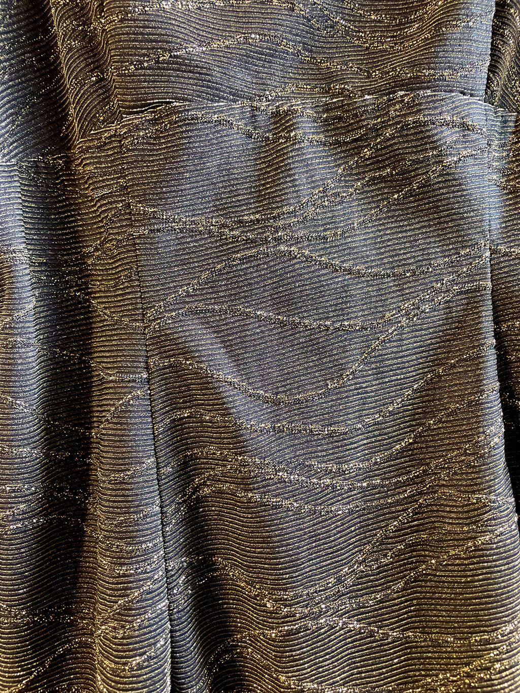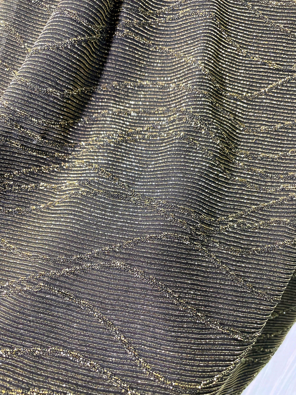 Sparkle knit fabric with swirly pattern, black lining. Metallic gold/black (Bronze), black undertones, black lining.
