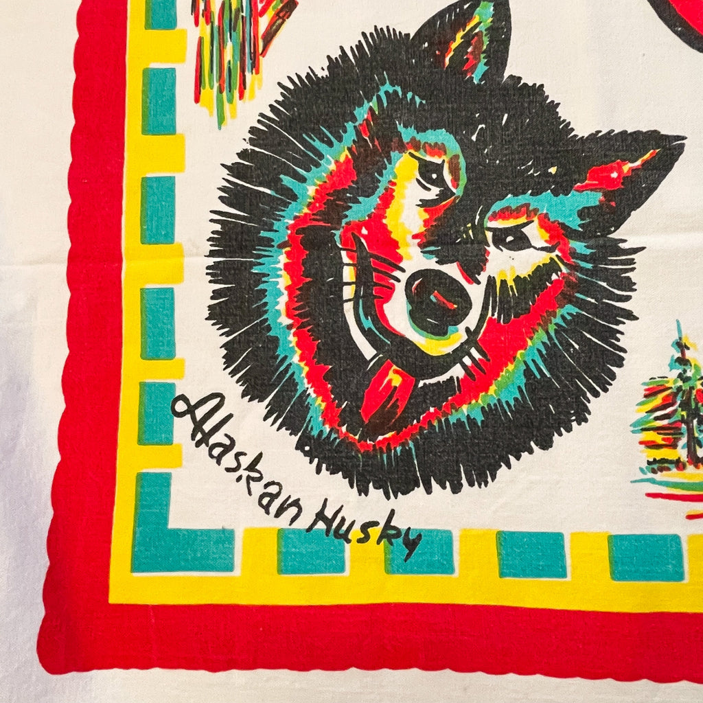 Vintage Alaska Tablecloth, Souvenir Cotton Print 47 x 49