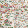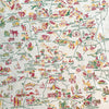 White cotton, yellow, red, & green print.