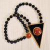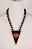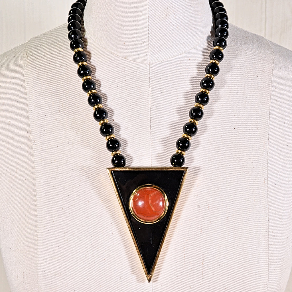 Vintage 80s triangle shape Avant Garde Modernist pendant necklace. Faux stones and gold-tone finish. 80s Deco style. A fun statement pendant necklace.