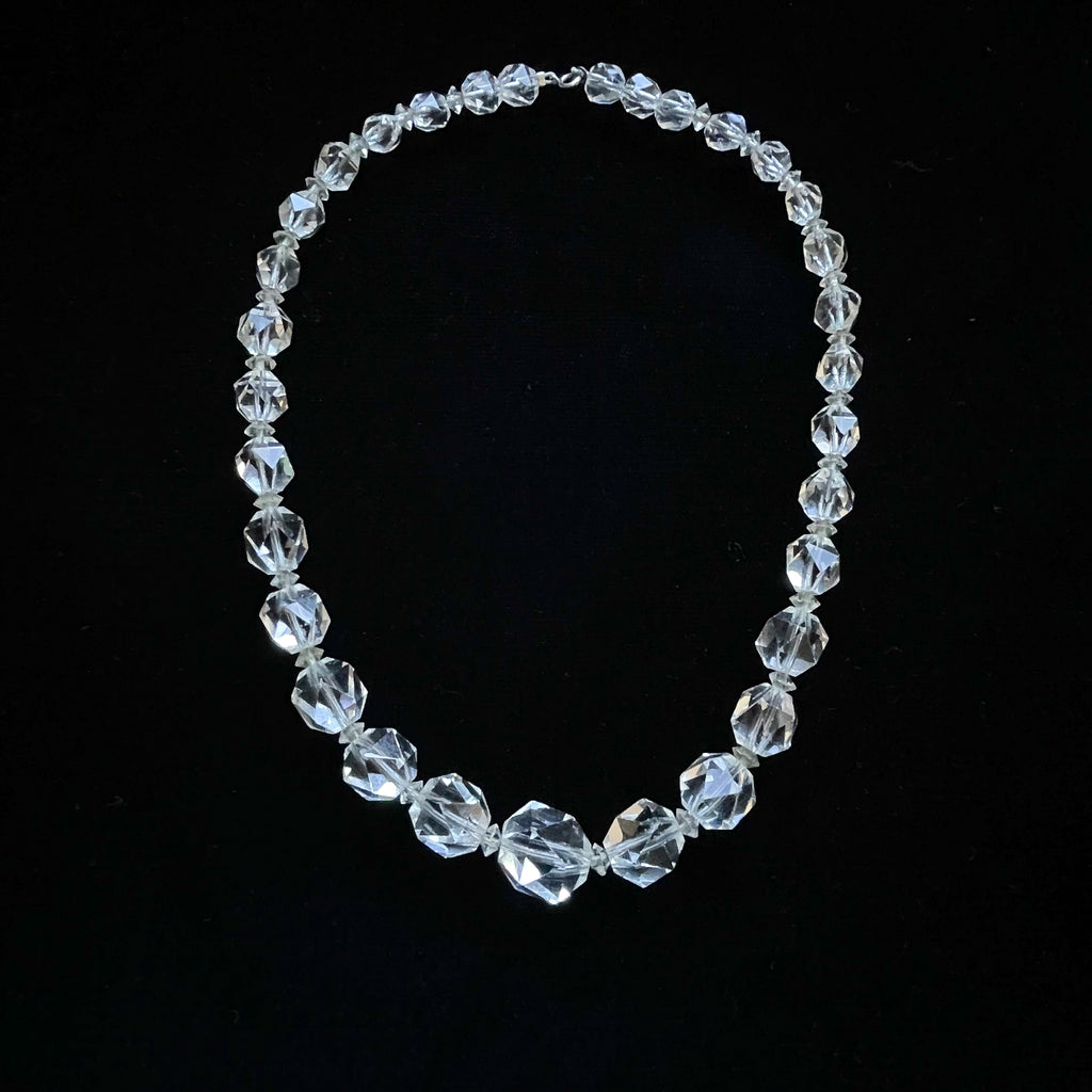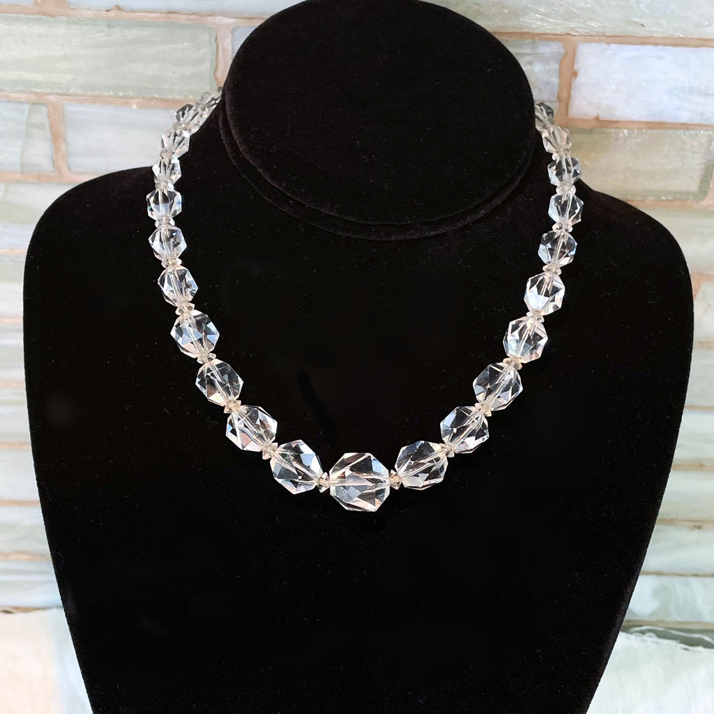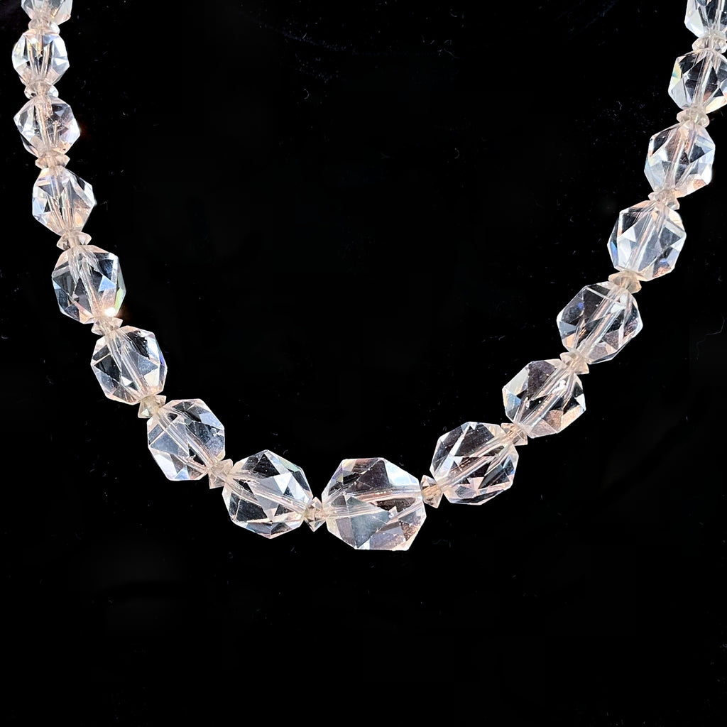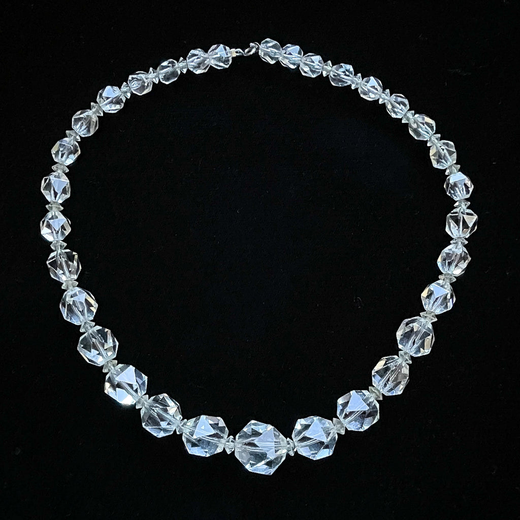 Vintage Art Deco clear graduated crystal bead necklace with small crystal spacers.