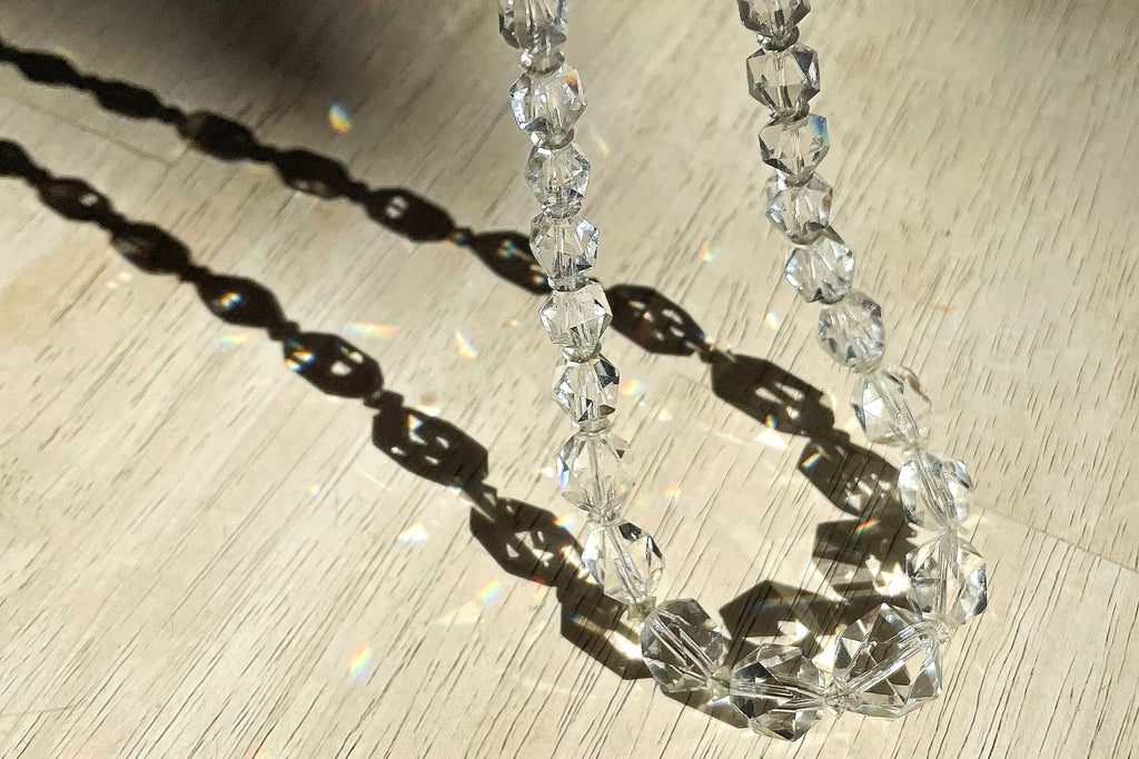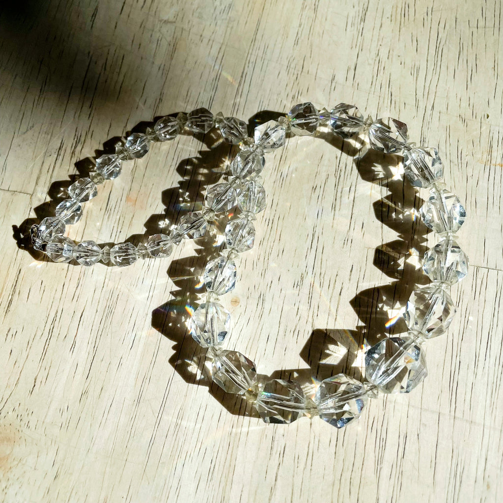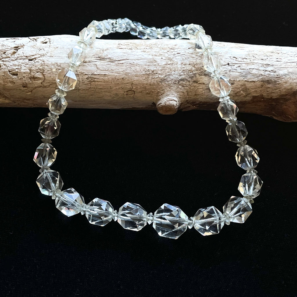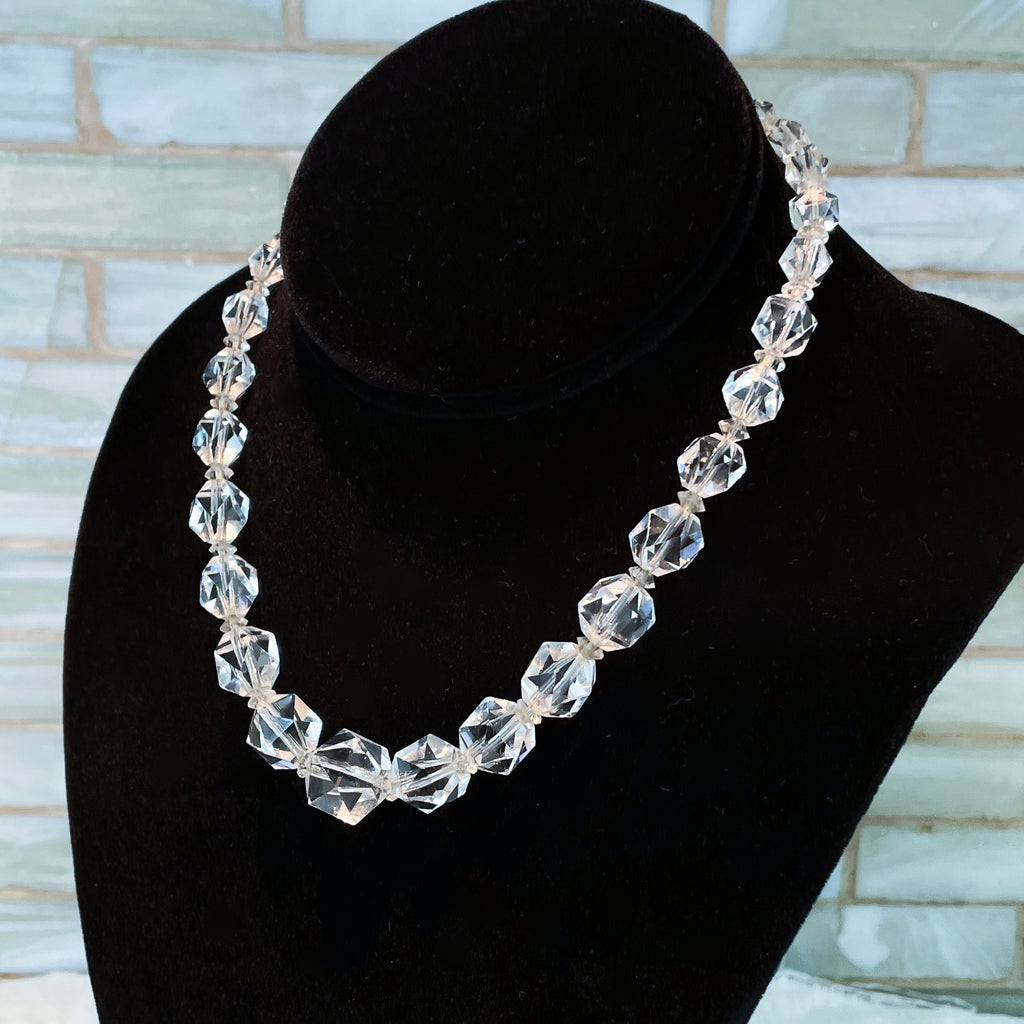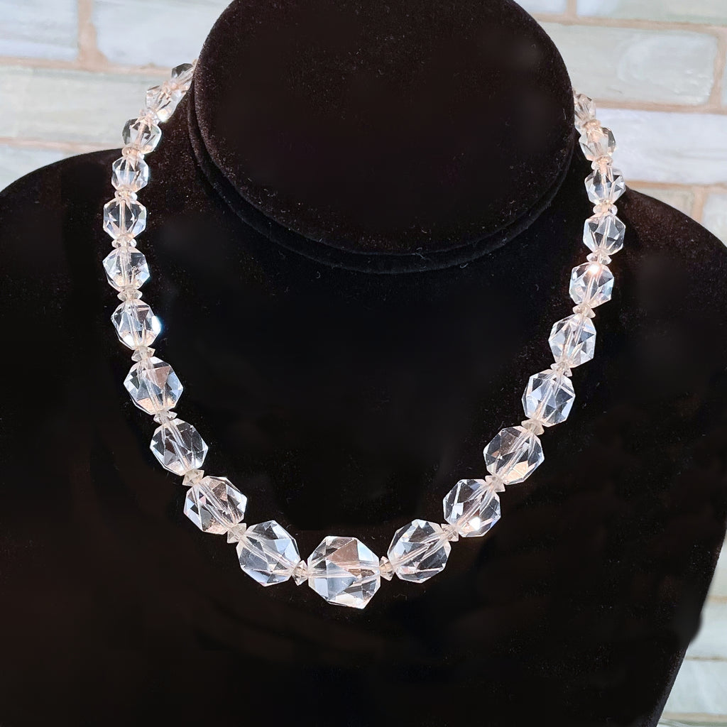 Vintage Art Deco clear graduated crystal bead necklace with small crystal spacers.