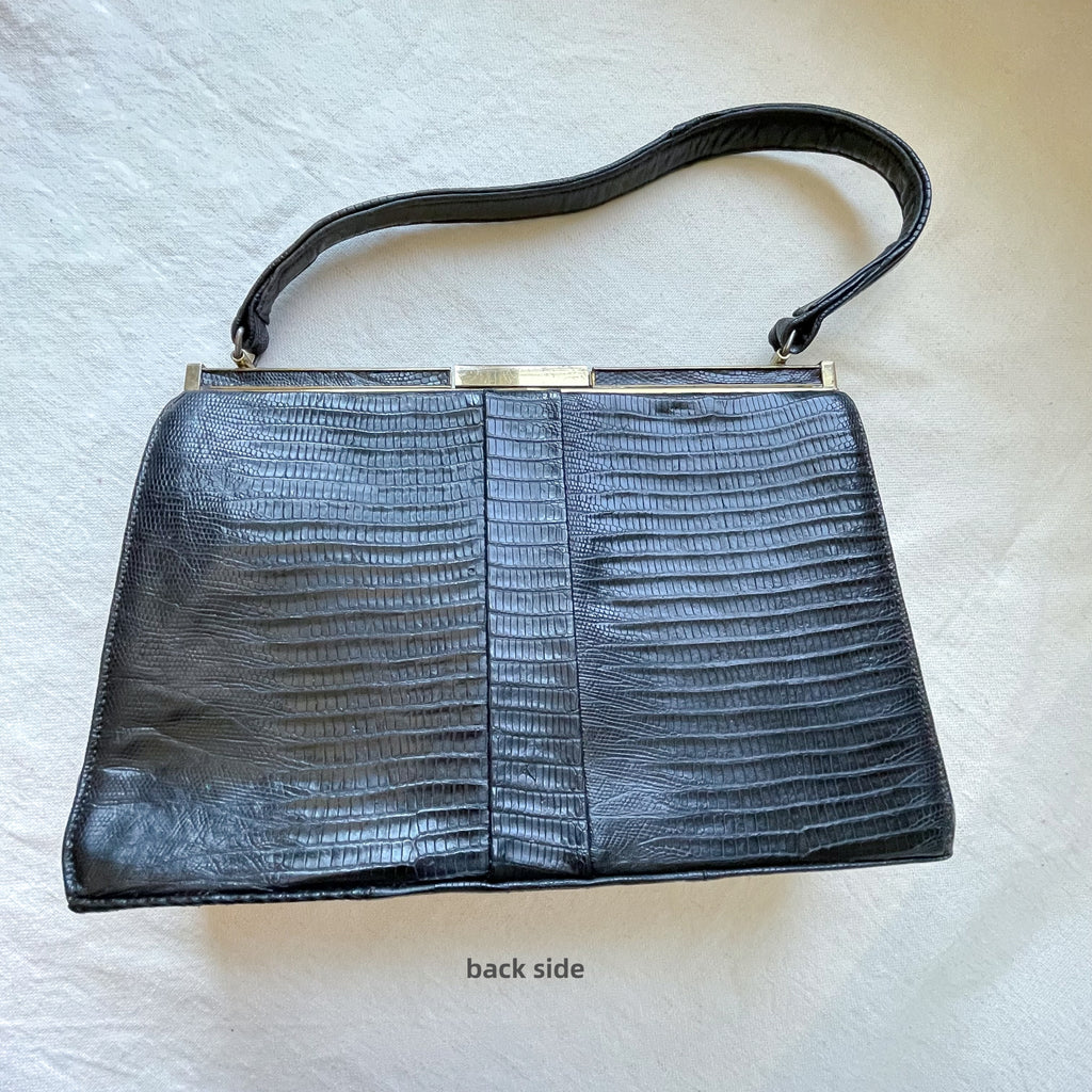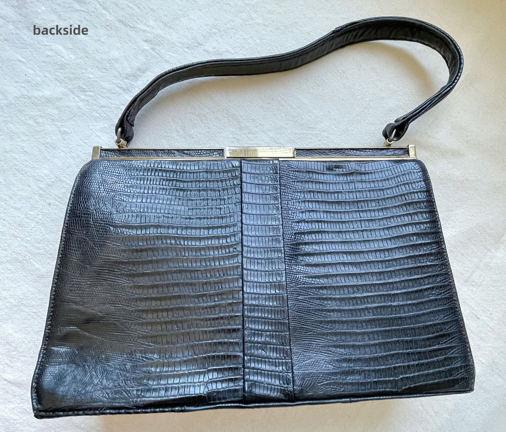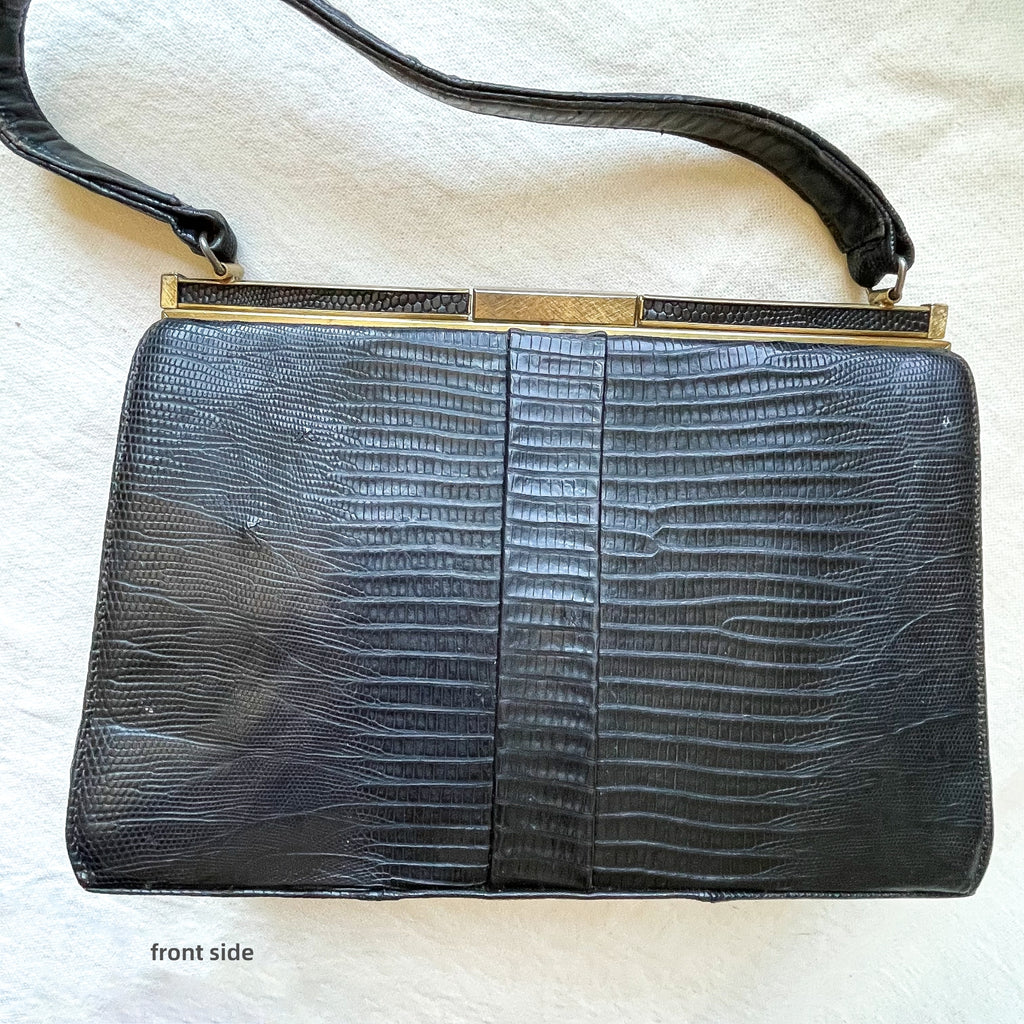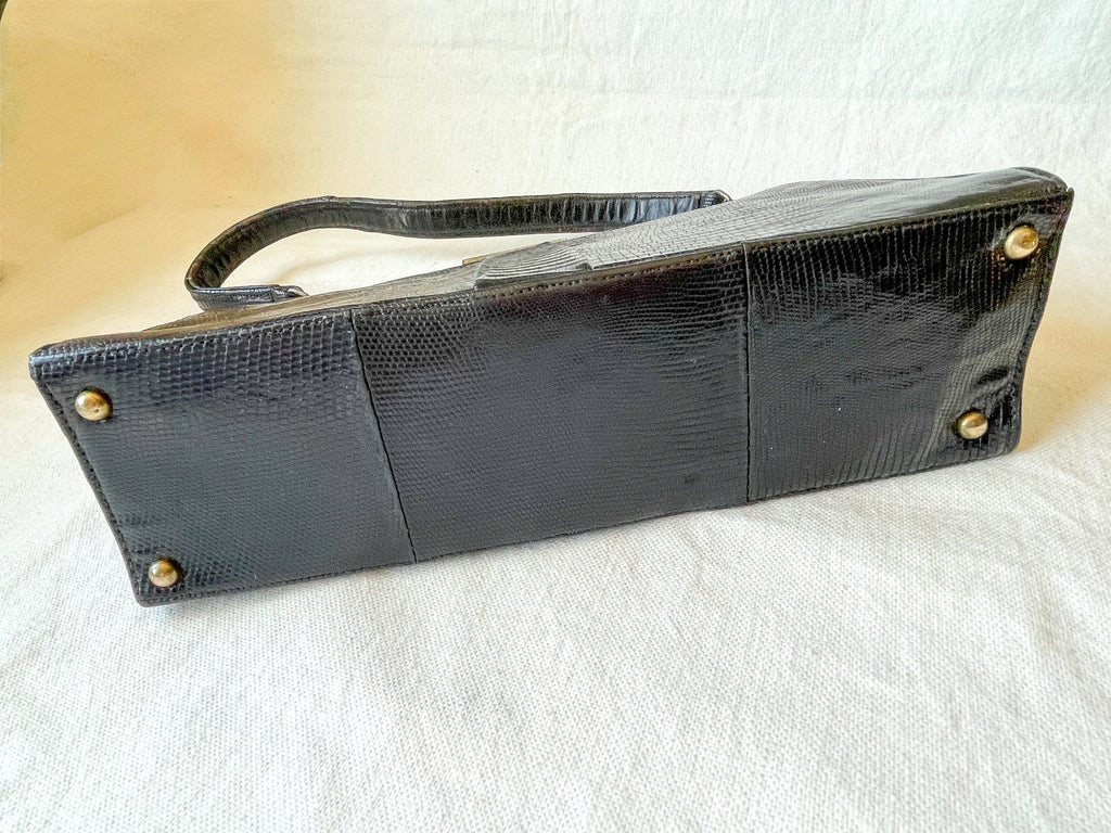 Vintage black Lizard top handle handbag.