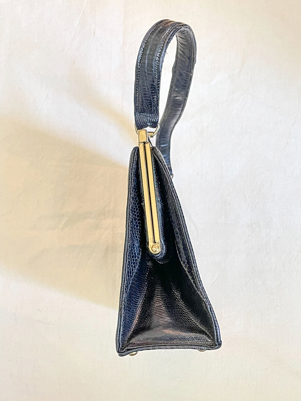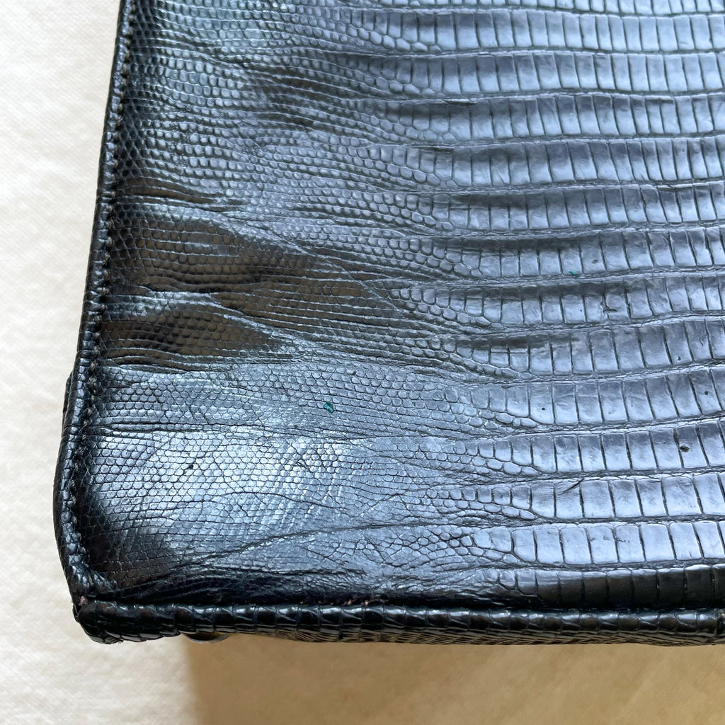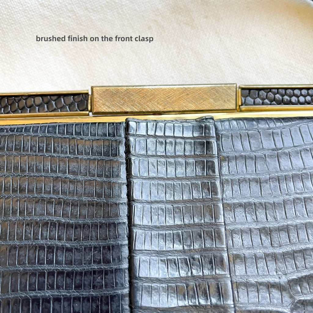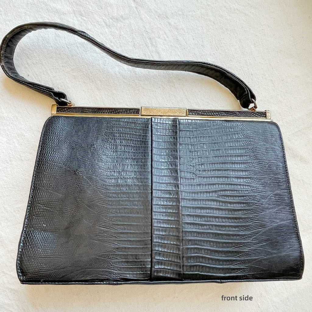Vintage black Lizard top handle handbag.