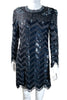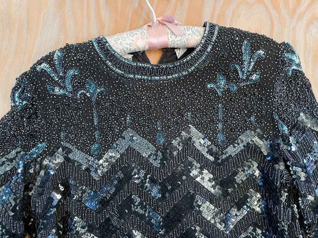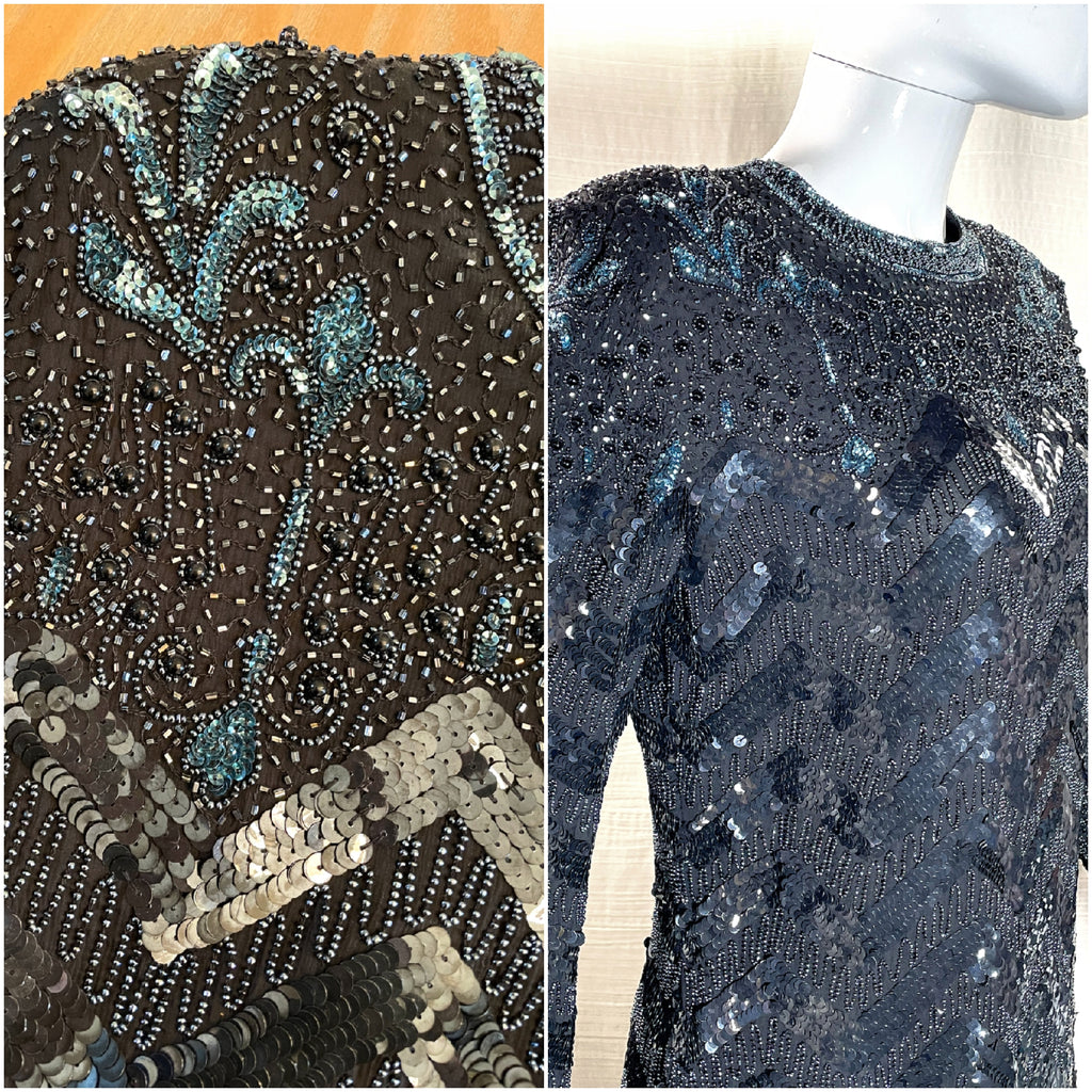 Vintage Black & Blue Beaded Sequin Mini Dress S/M