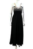 Vintage 70s long black dress with pale gray & metallic silver accents.
